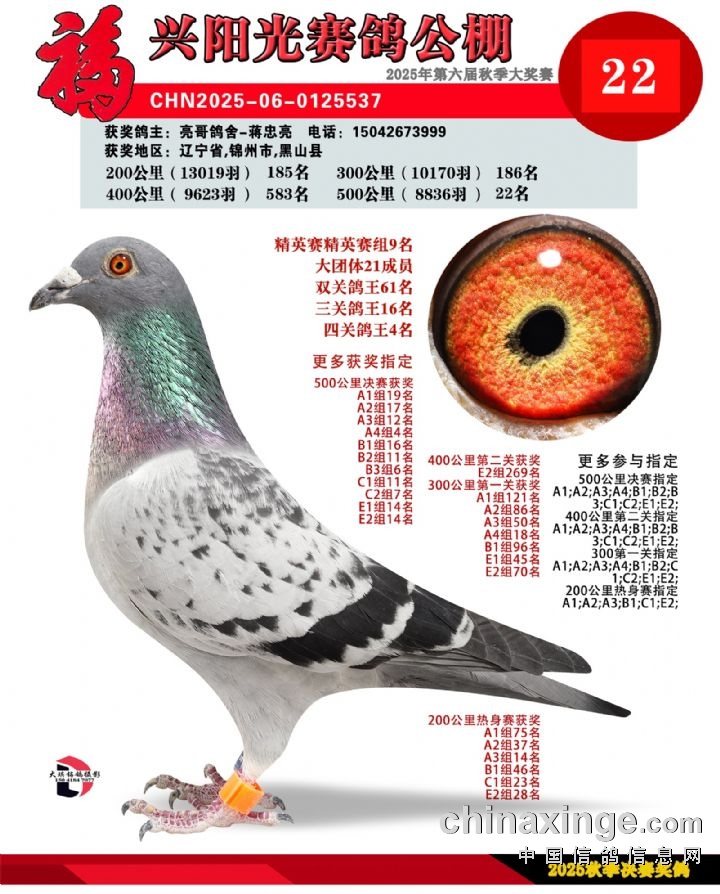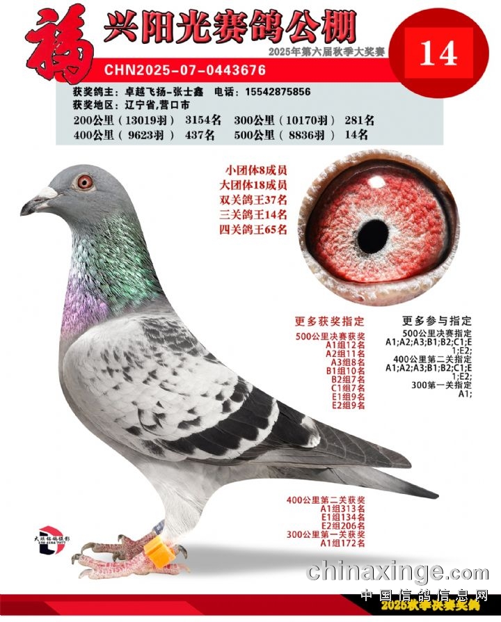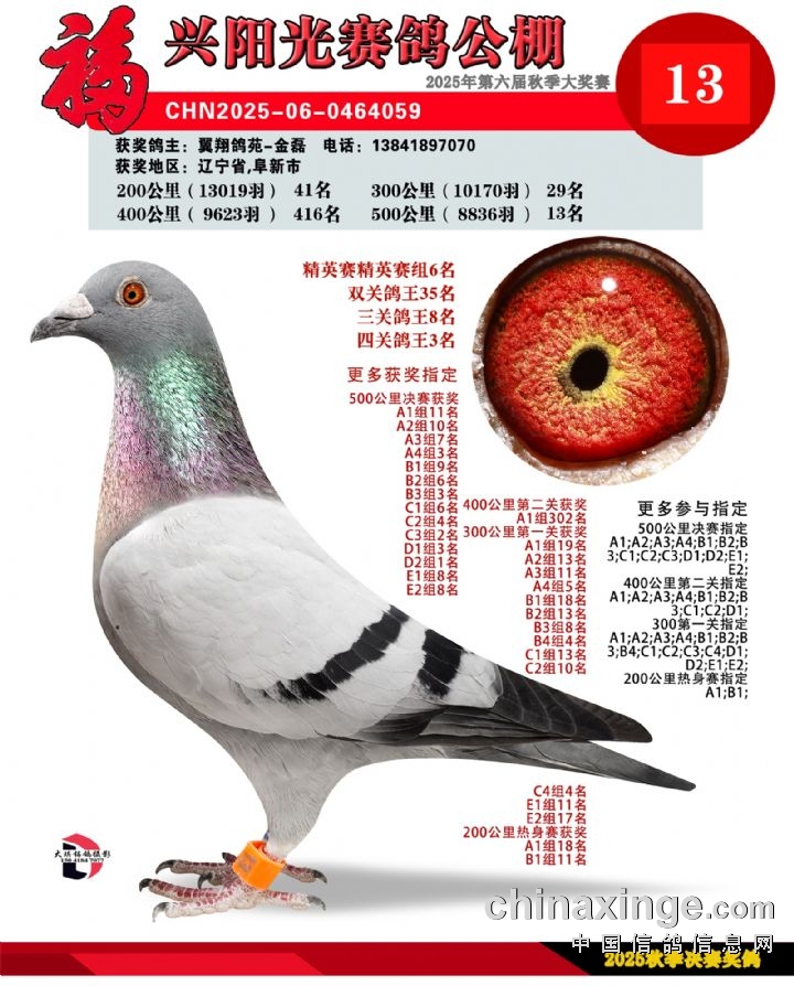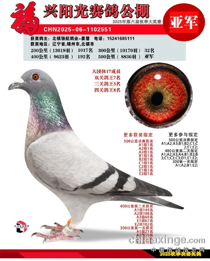 辽宁福兴阳光公棚冠军-30名获奖鸽照片