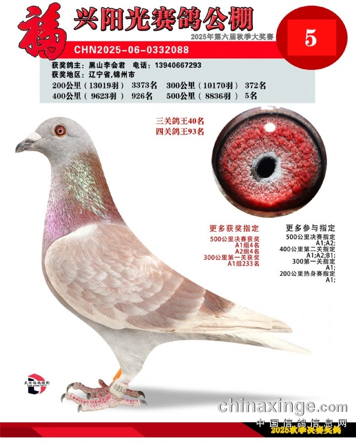 辽宁福兴阳光公棚加站赛91名-135名获奖鸽照片