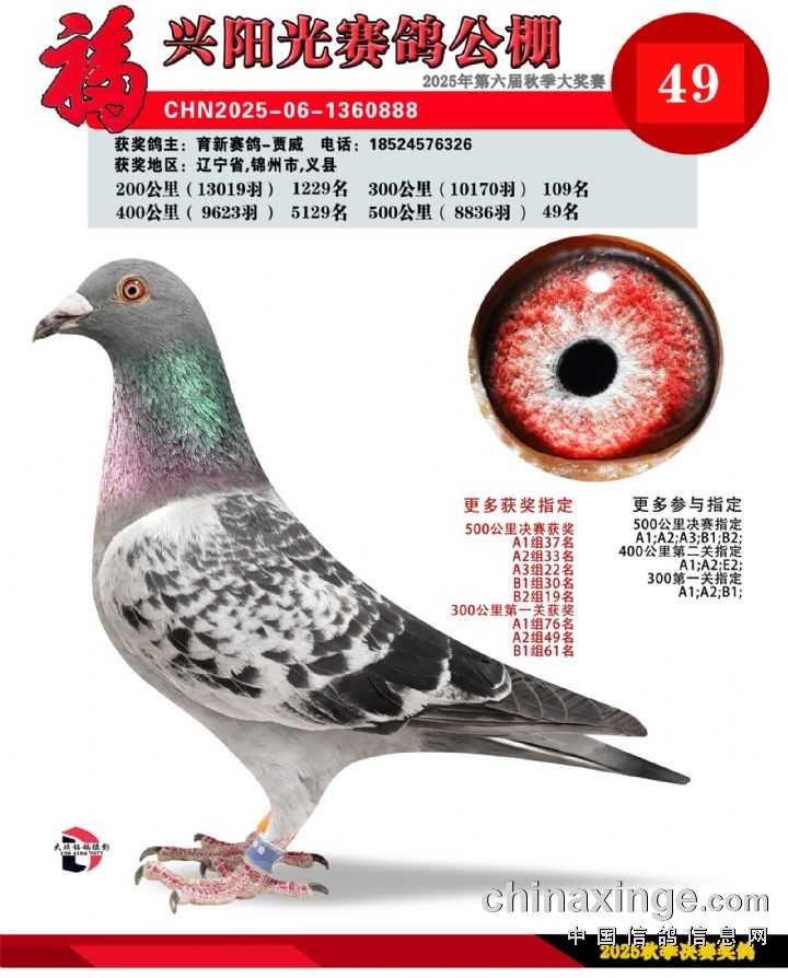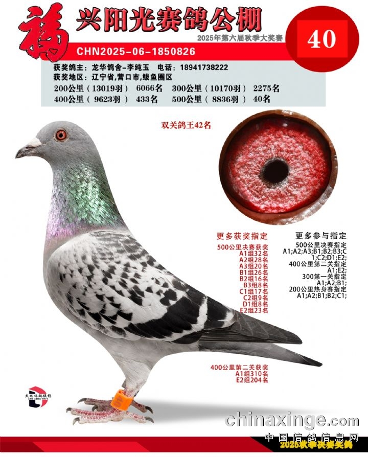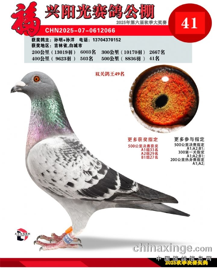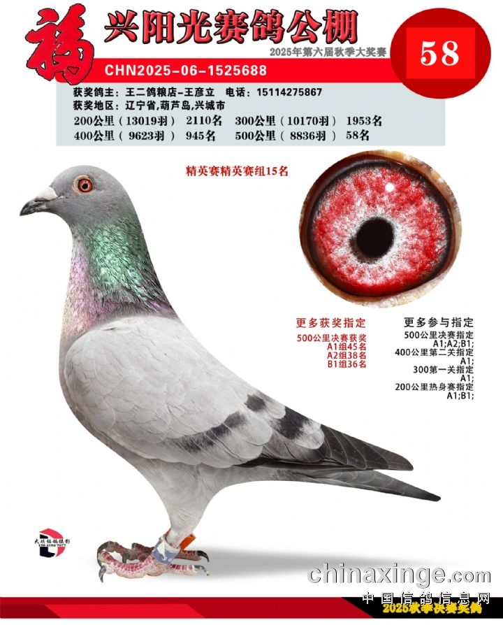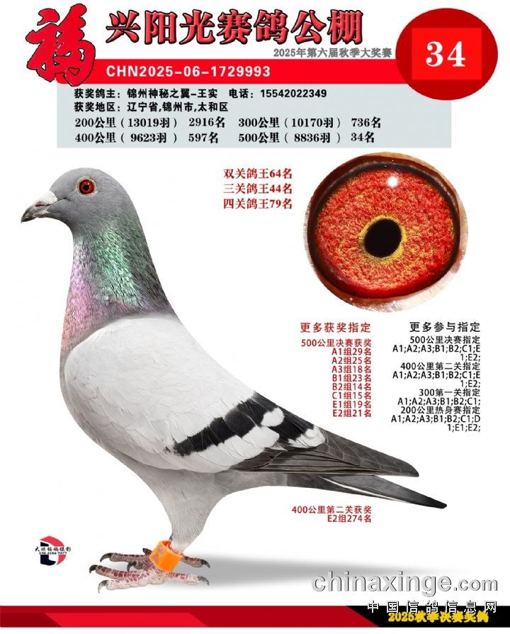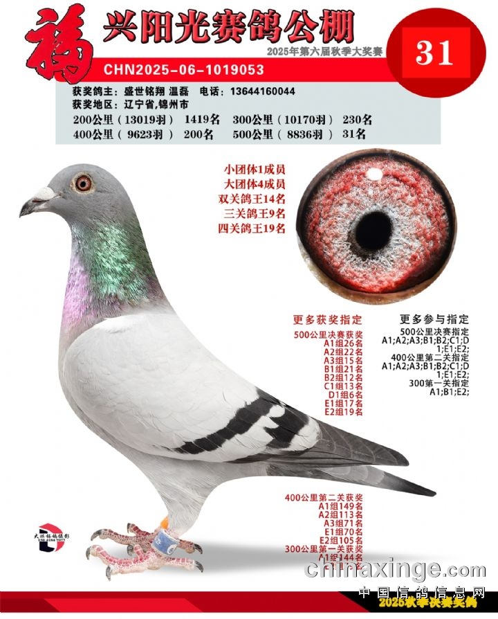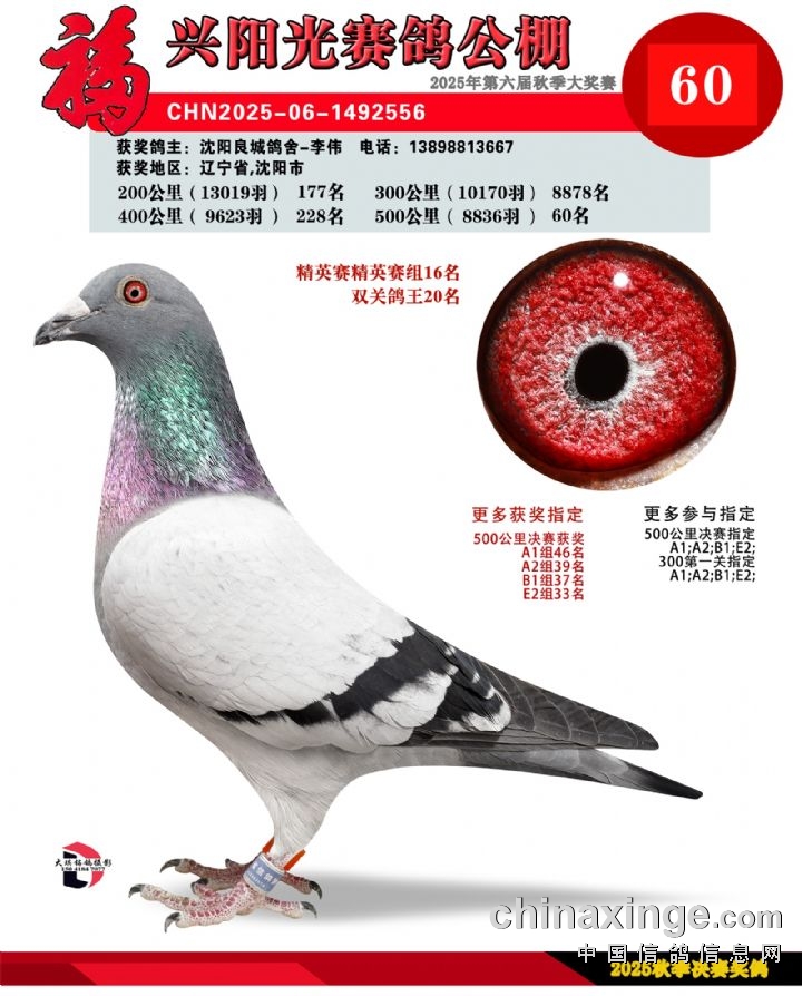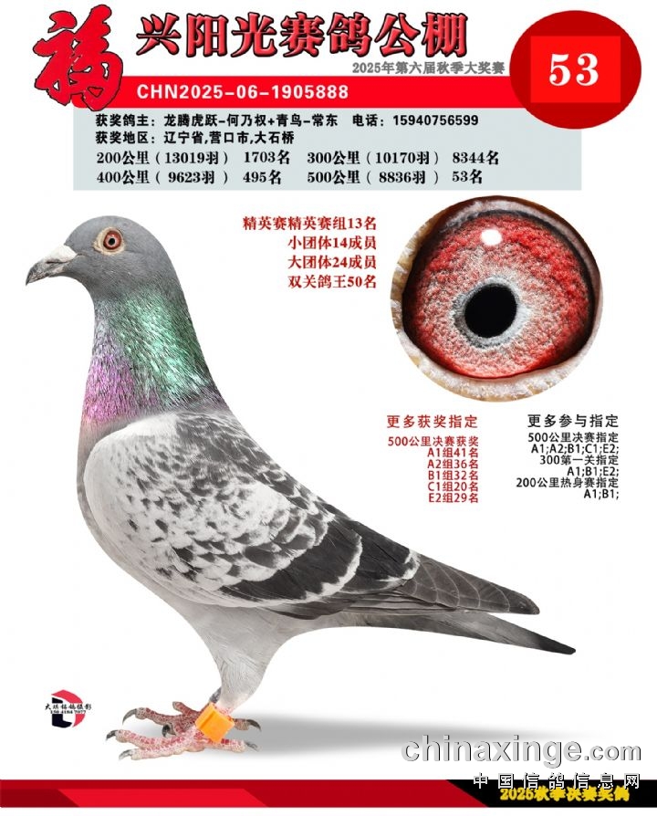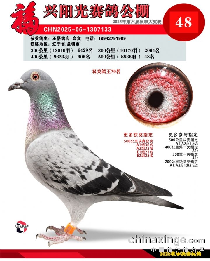 辽宁福兴阳光公棚决赛31名-60名获奖鸽照片