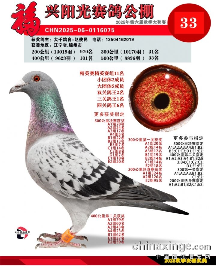 • 辽宁福兴阳光公棚加站赛获奖名单 (2025-11-3 16:26:17)