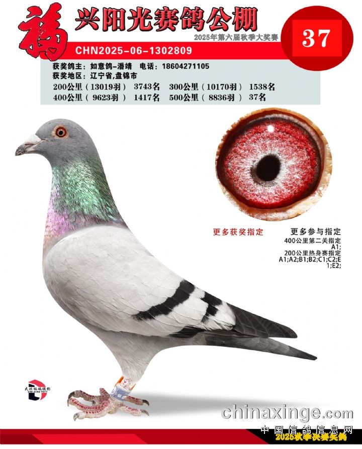 • 辽宁福兴阳光公棚加站赛30名-60名获奖鸽照片 (2025-11-5 9:36:13)