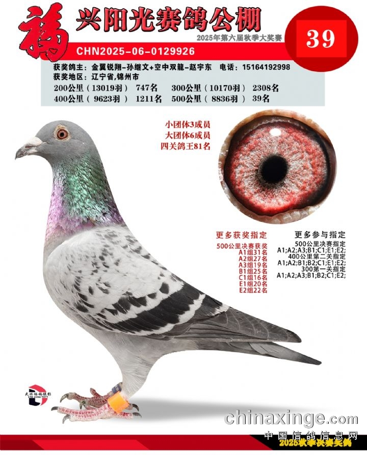 • 辽宁福兴阳光公棚加站赛冠军-30名获奖鸽照片 (2025-11-5 9:30:42)