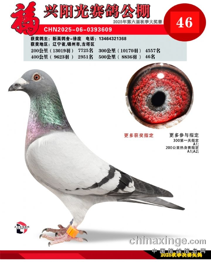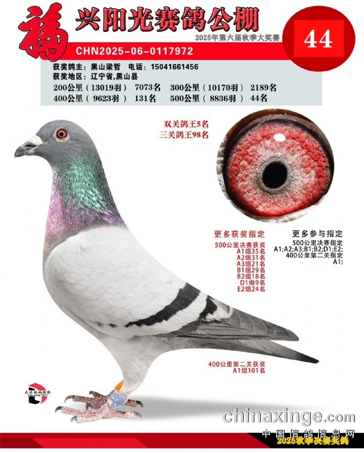 • 辽宁福兴阳光公棚加站赛138名-182名获奖鸽照片 (2025-11-5 9:58:16)