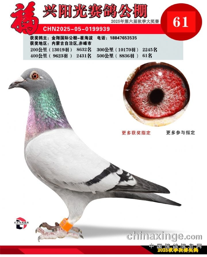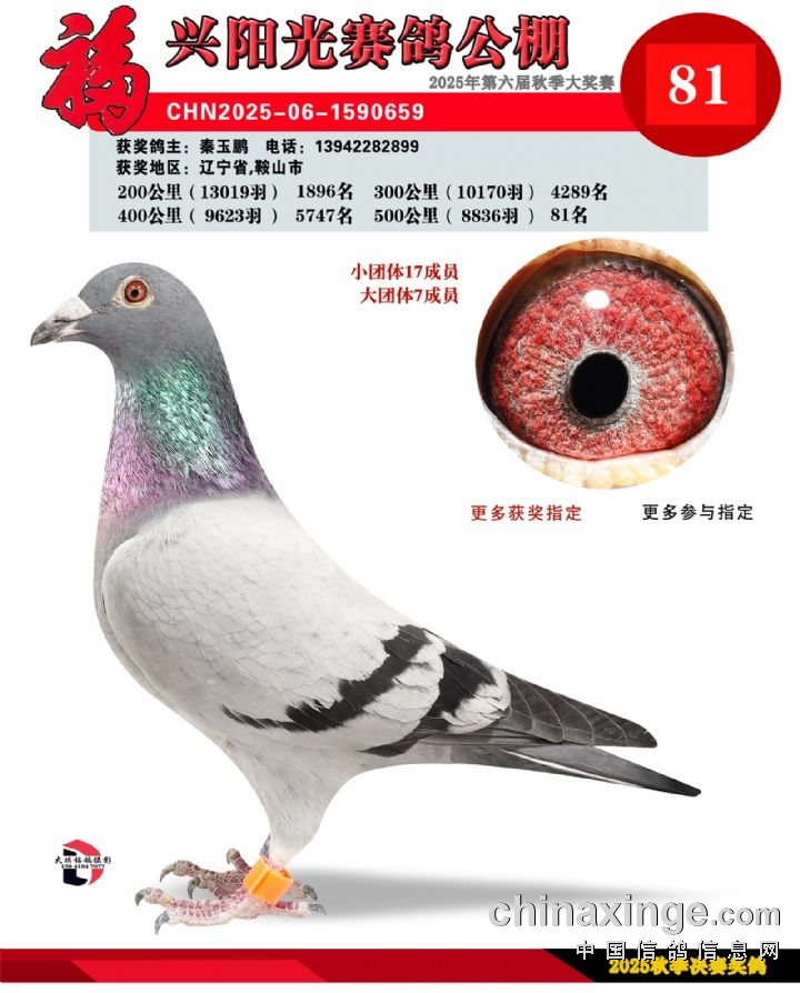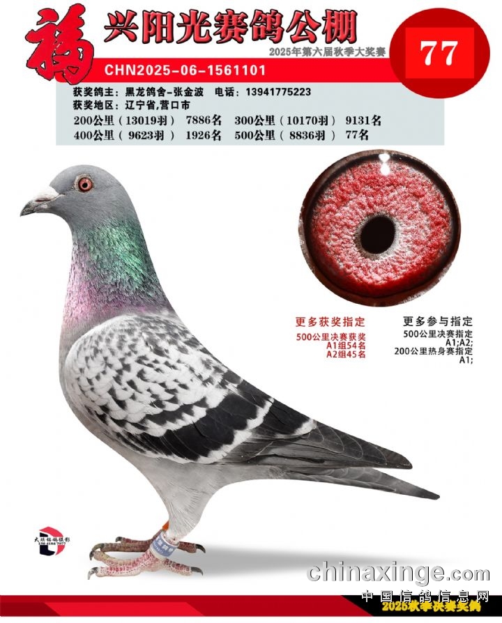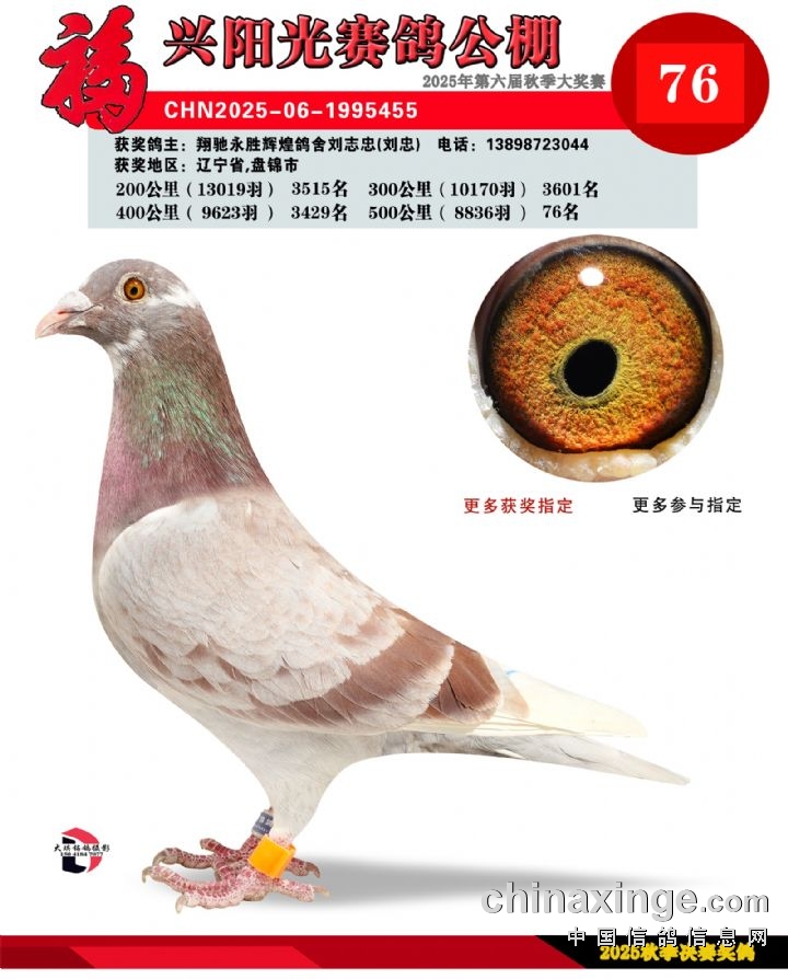 • 辽宁福兴阳光公棚加站赛61名-90名获奖鸽照片 (2025-11-5 9:42:46)