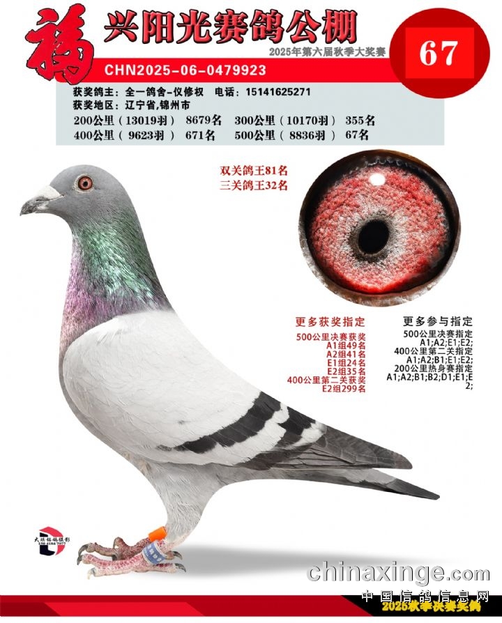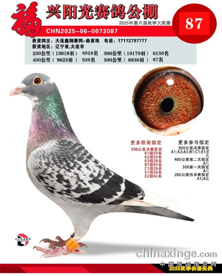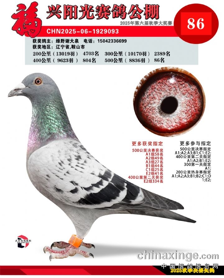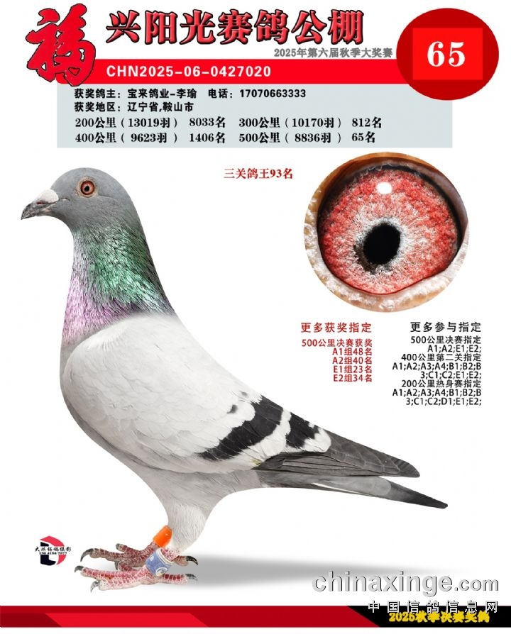 辽宁福兴阳光公棚决赛61名-90名获奖鸽照片