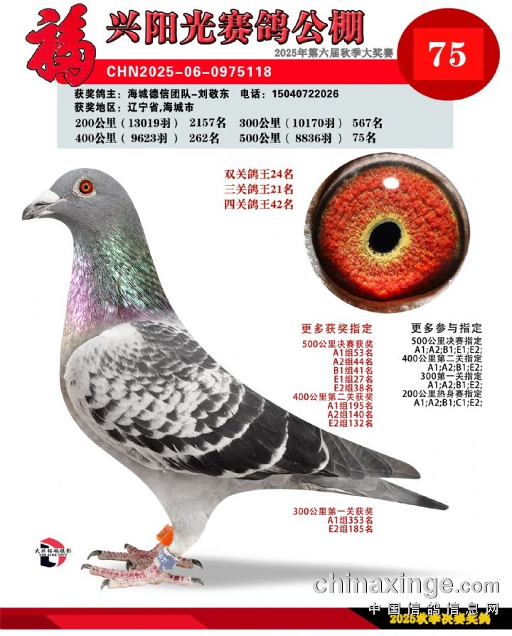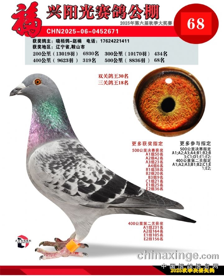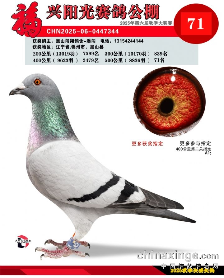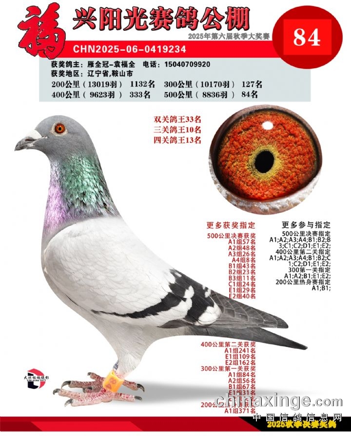 • 辽宁福兴阳光公棚加站赛获奖名单 (2025-11-3 16:26:17)