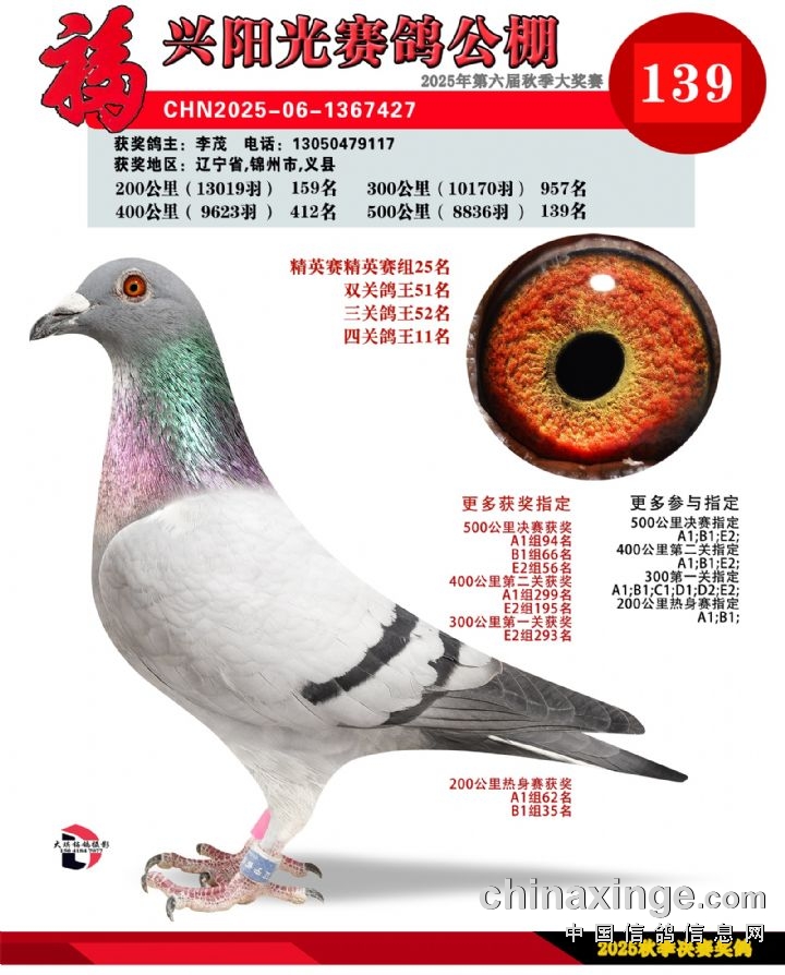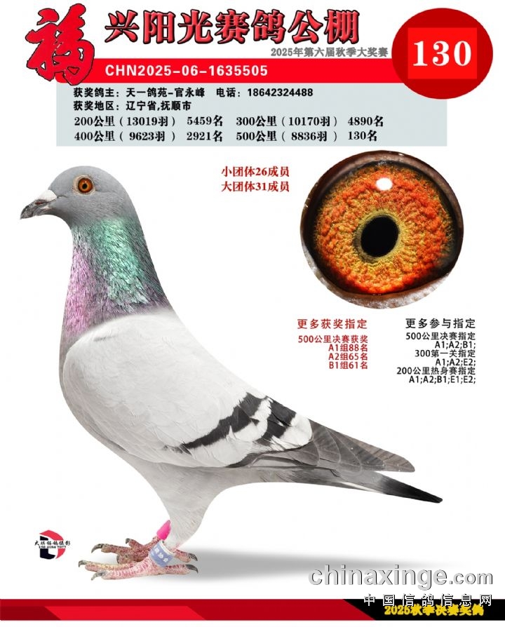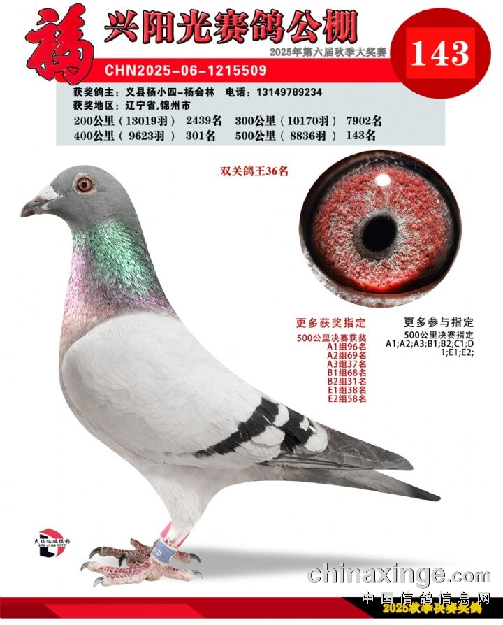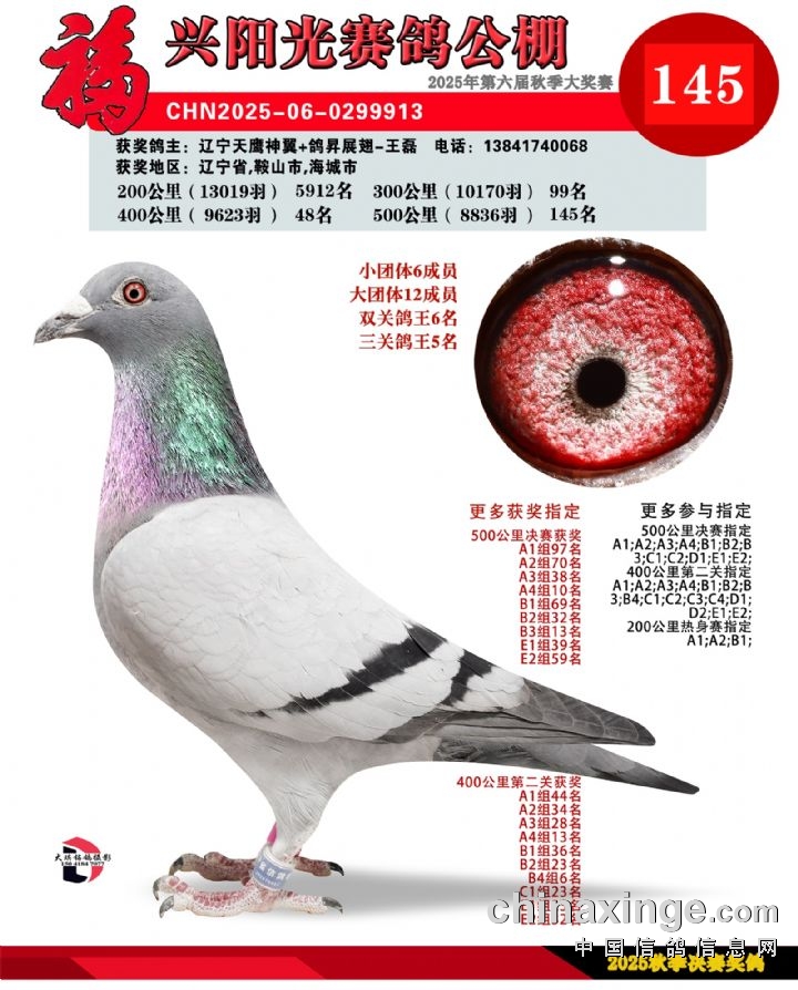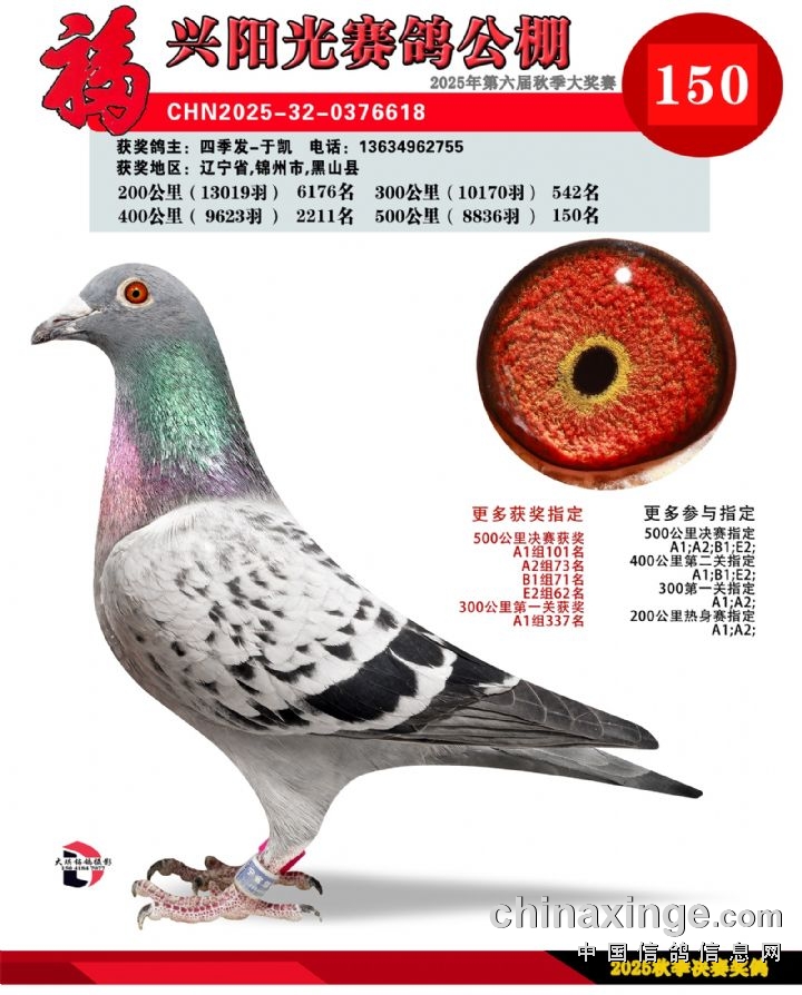 辽宁福兴阳光公棚决赛121名-150名获奖鸽照片