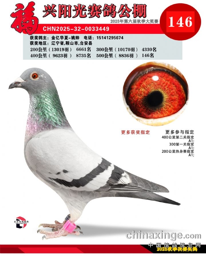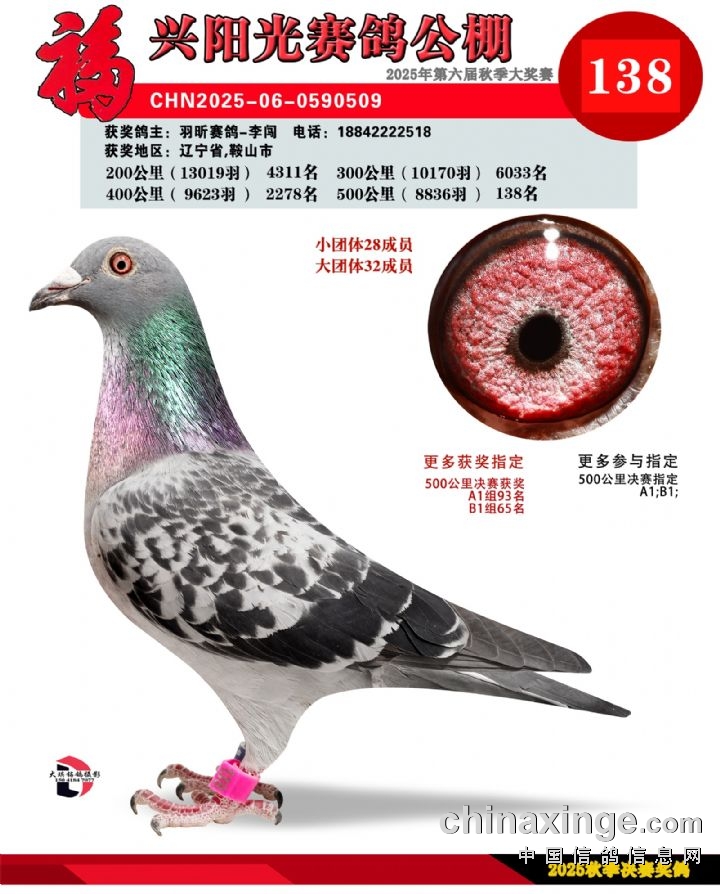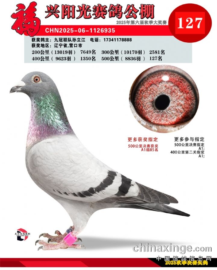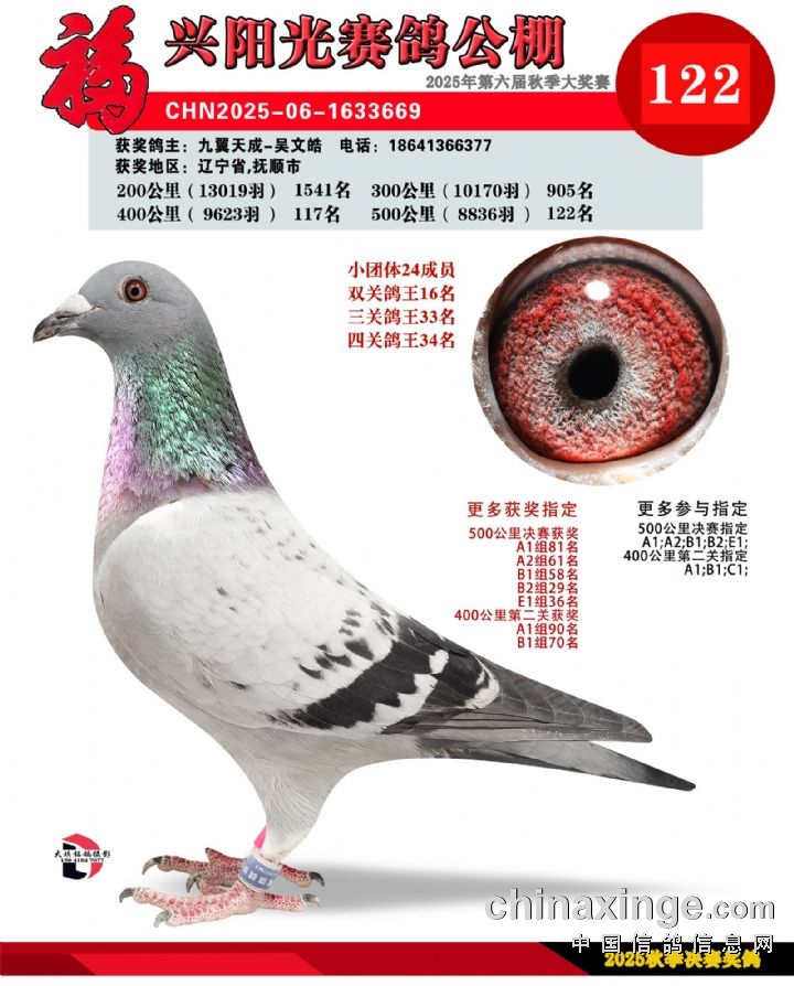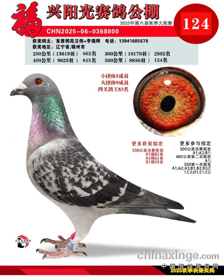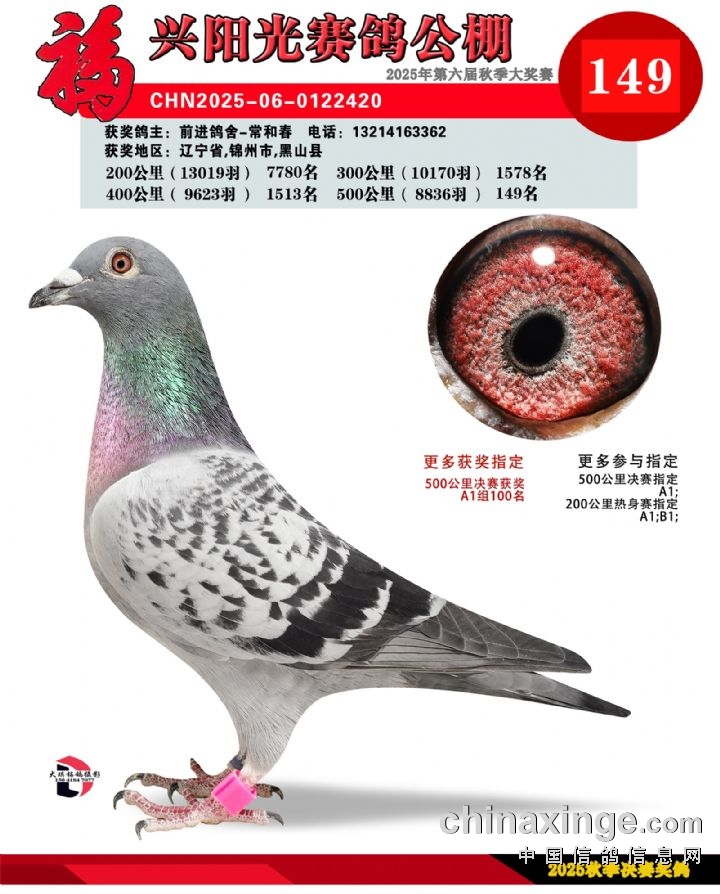 辽宁福兴阳光公棚决赛121名-150名获奖鸽照片