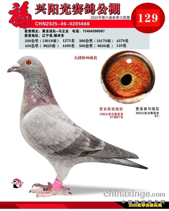 辽宁福兴阳光公棚加站赛冠军-30名获奖鸽照片
