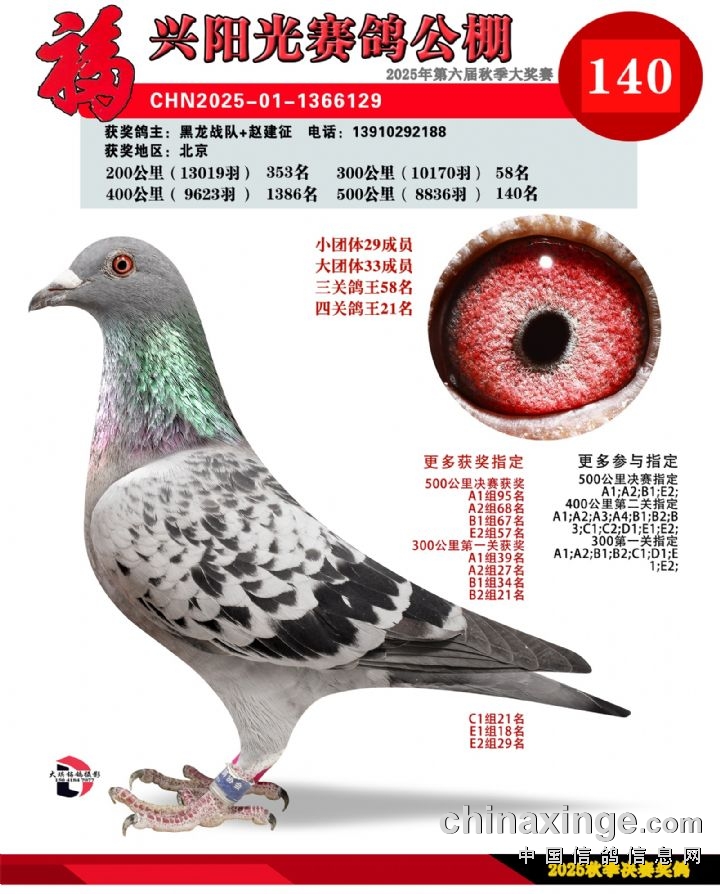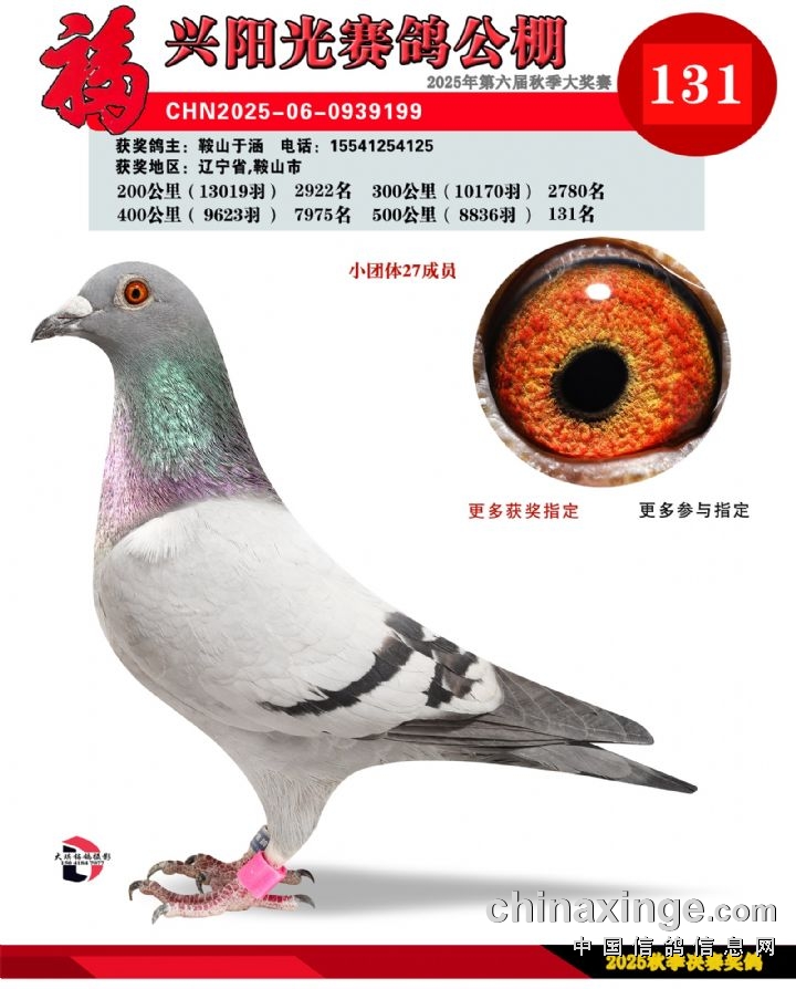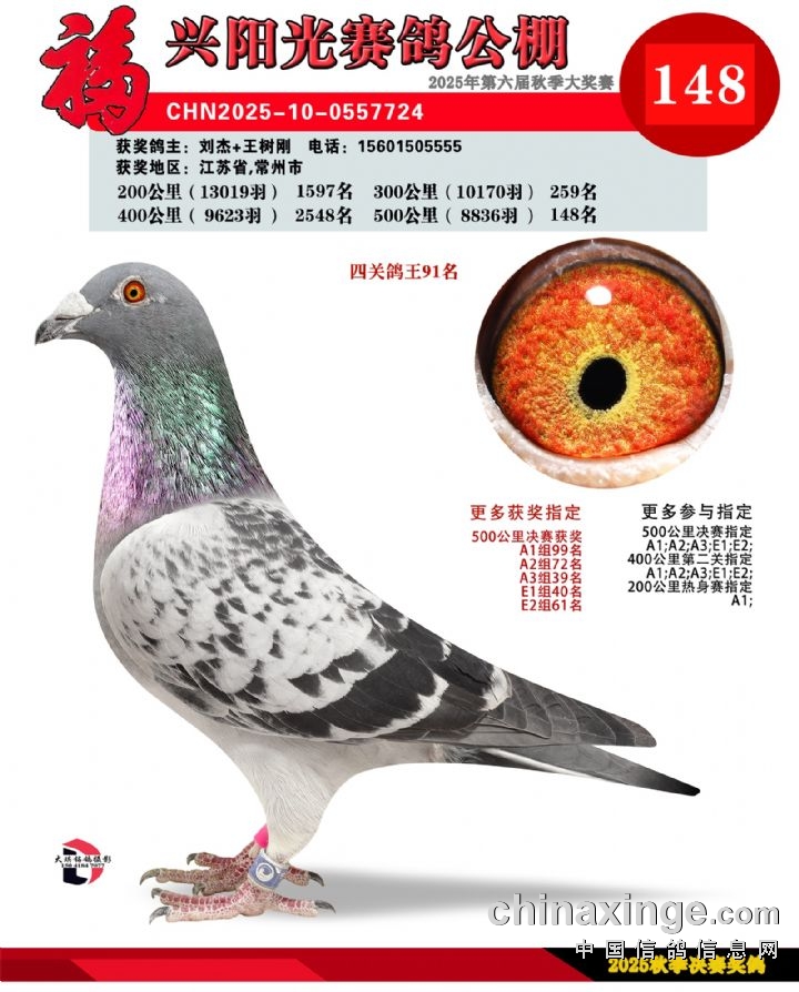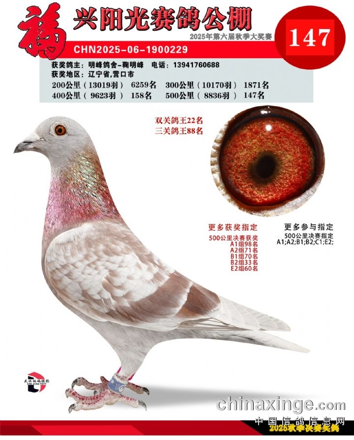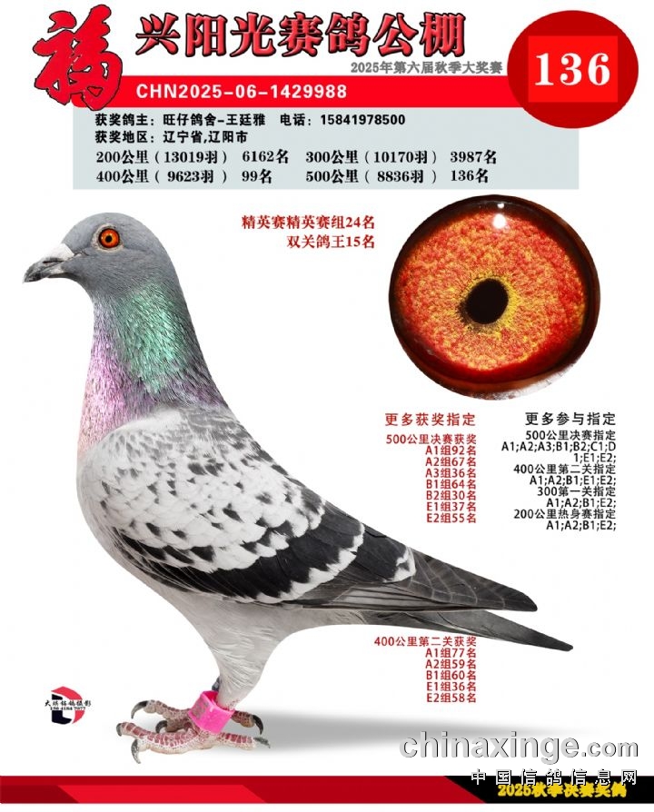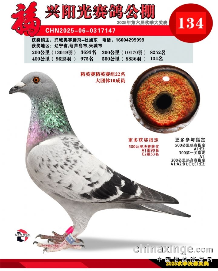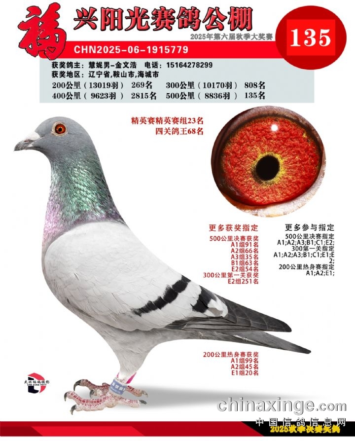 辽宁福兴阳光公棚加站赛91名-135名获奖鸽照片