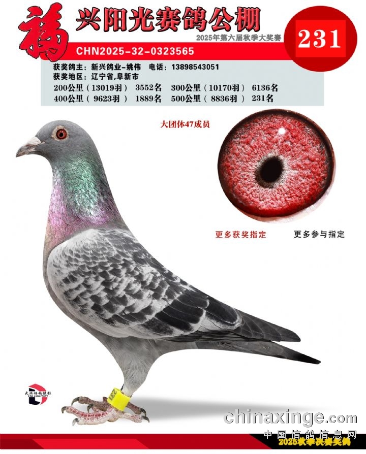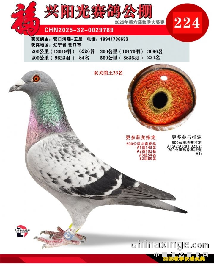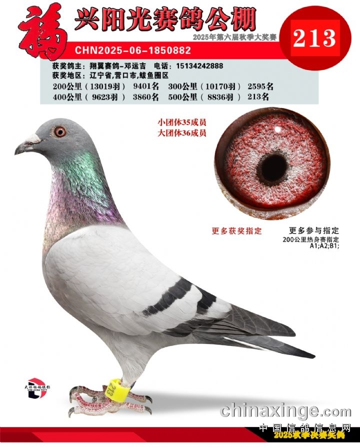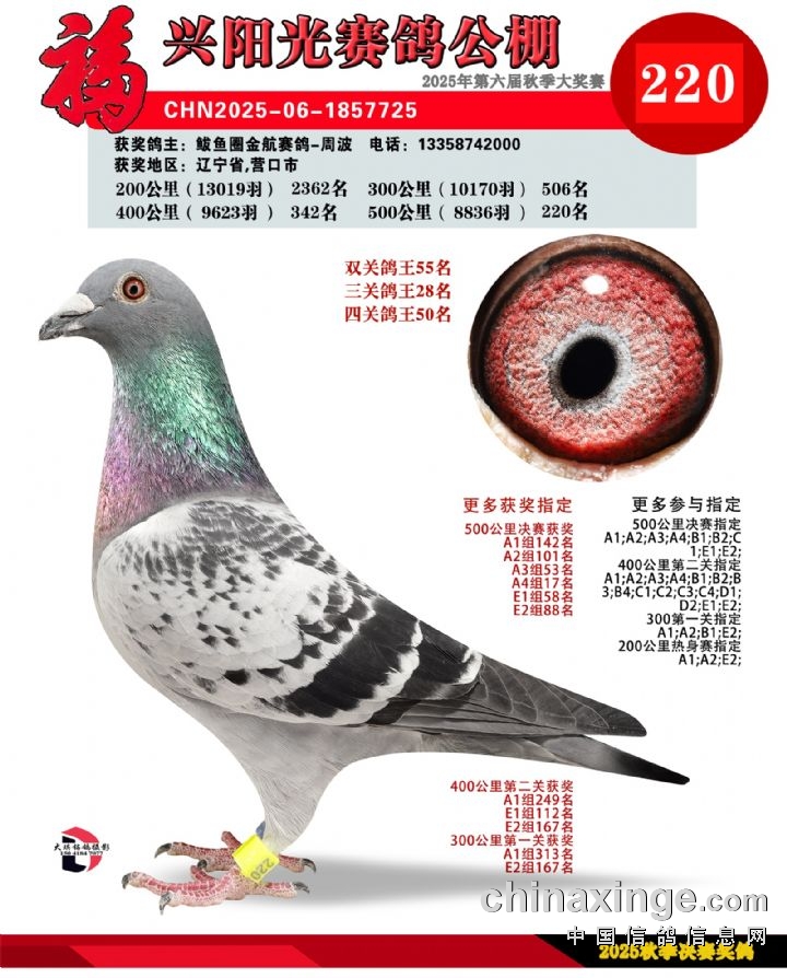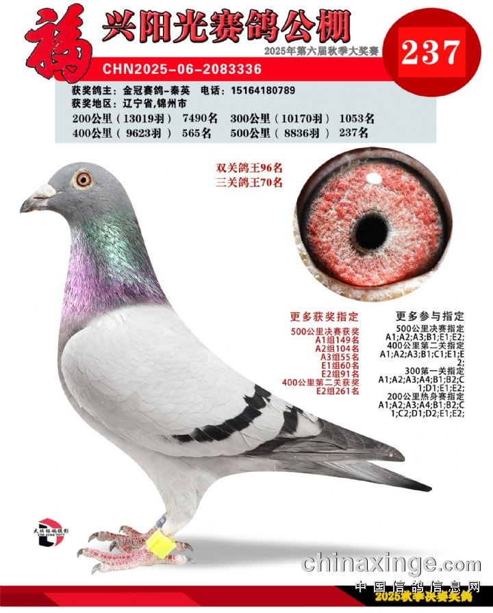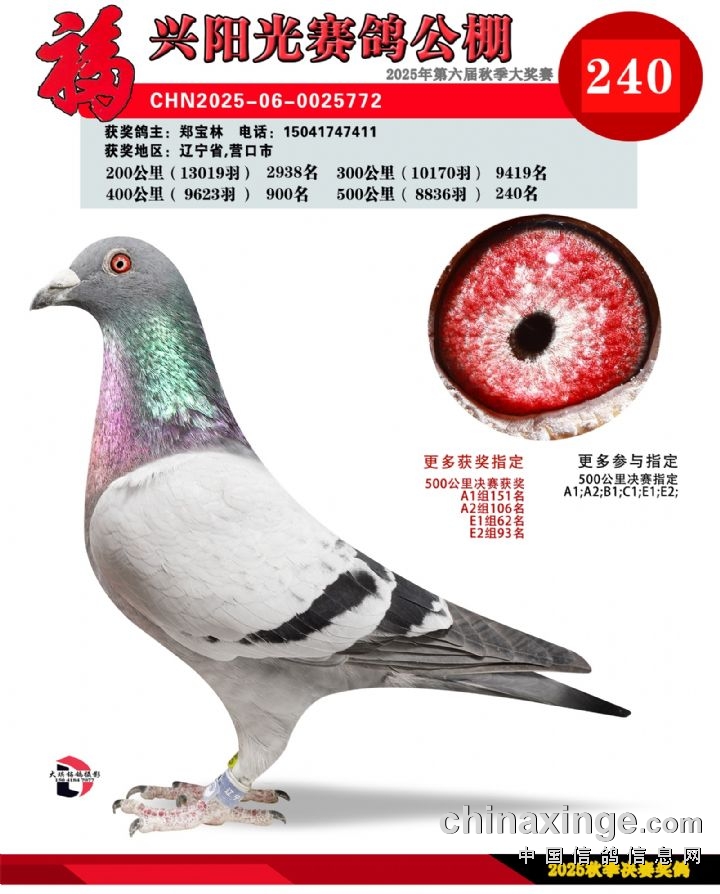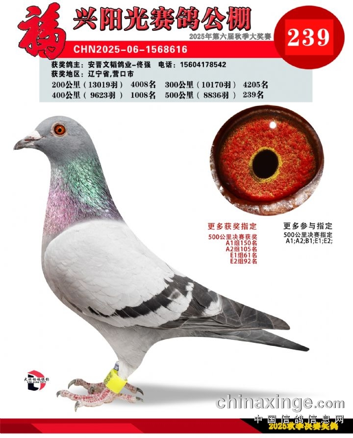 辽宁福兴阳光公棚决赛211名-240名获奖鸽照片