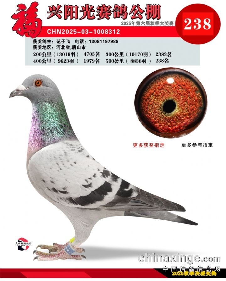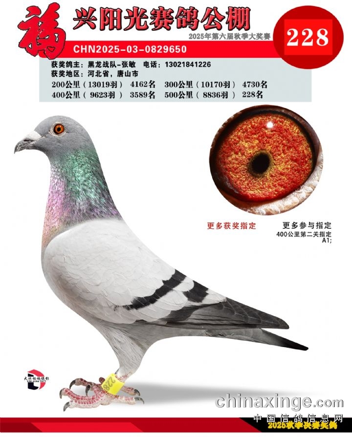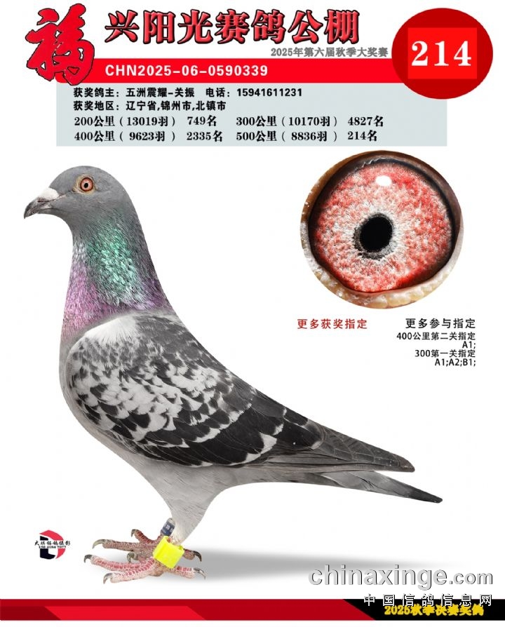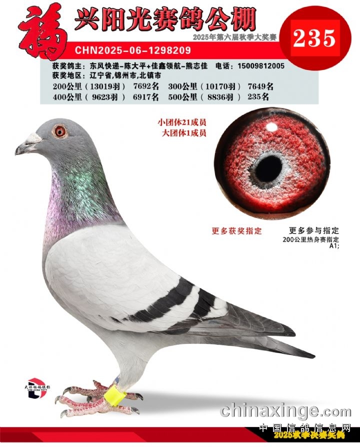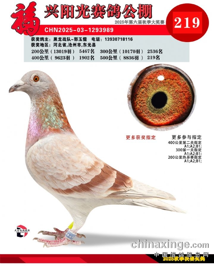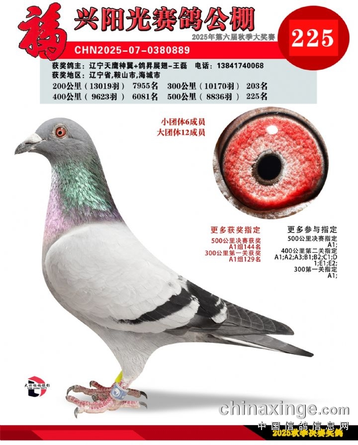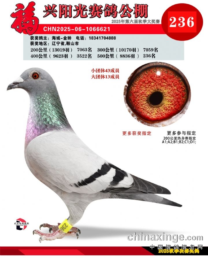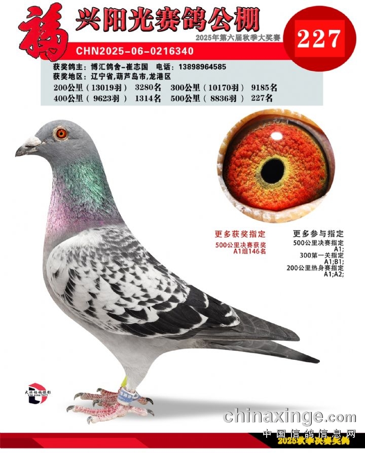 辽宁福兴阳光公棚决赛211名-240名获奖鸽照片