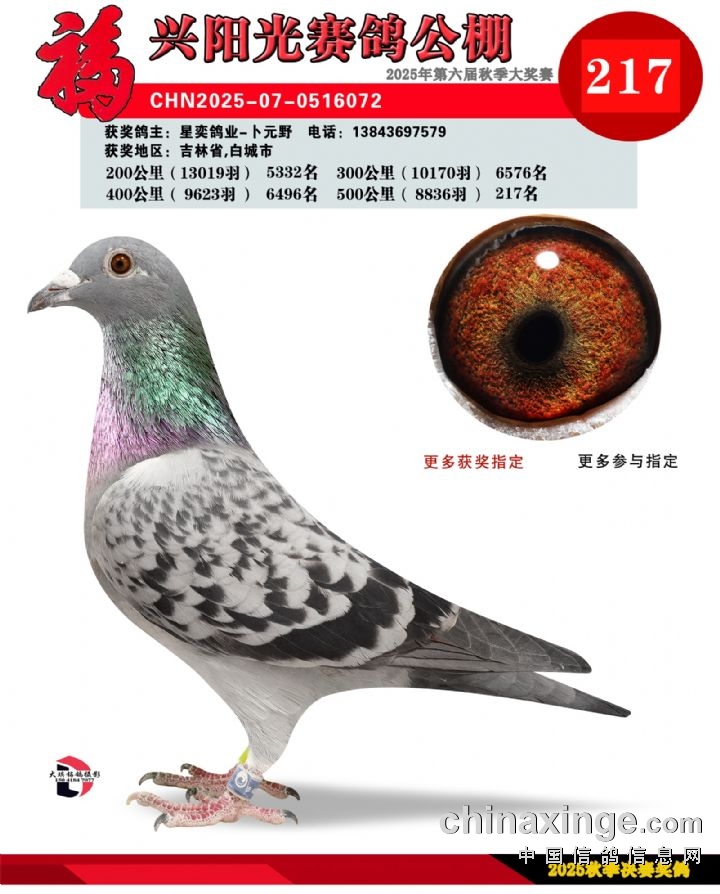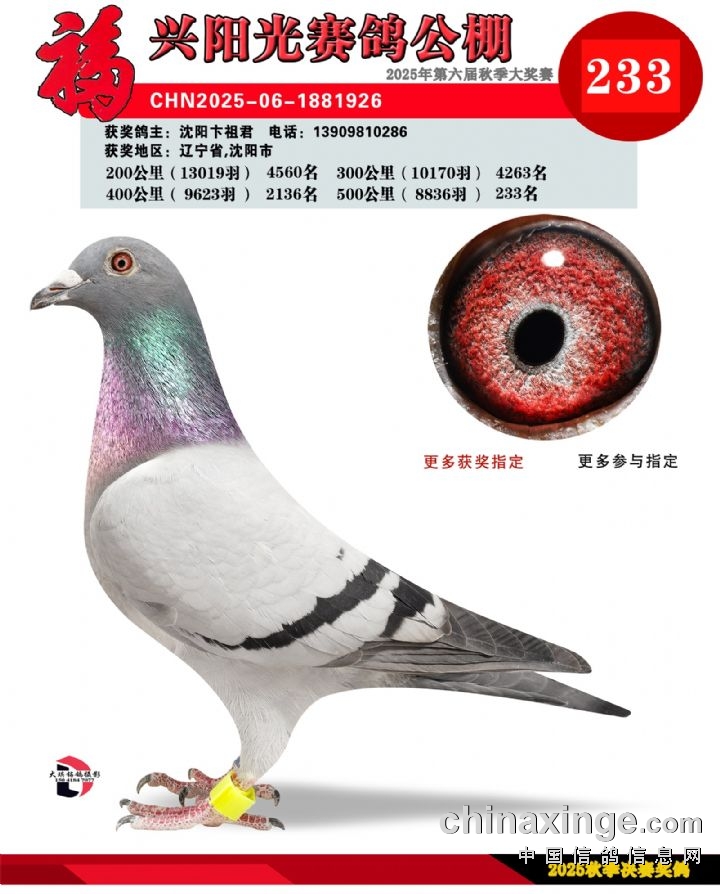 • 辽宁福兴阳光公棚加站赛获奖名单 (2025-11-3 16:26:17)