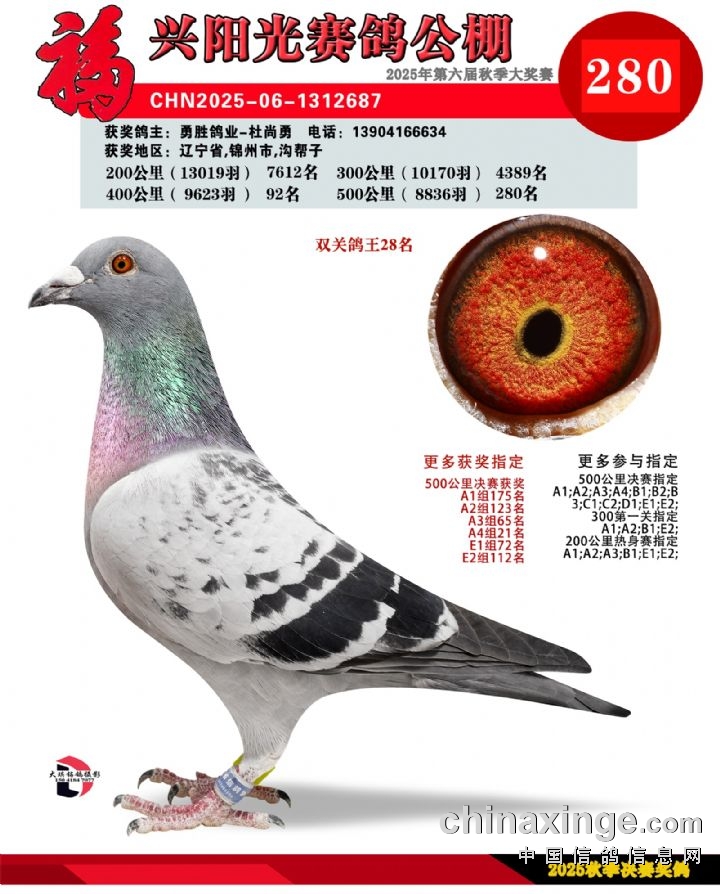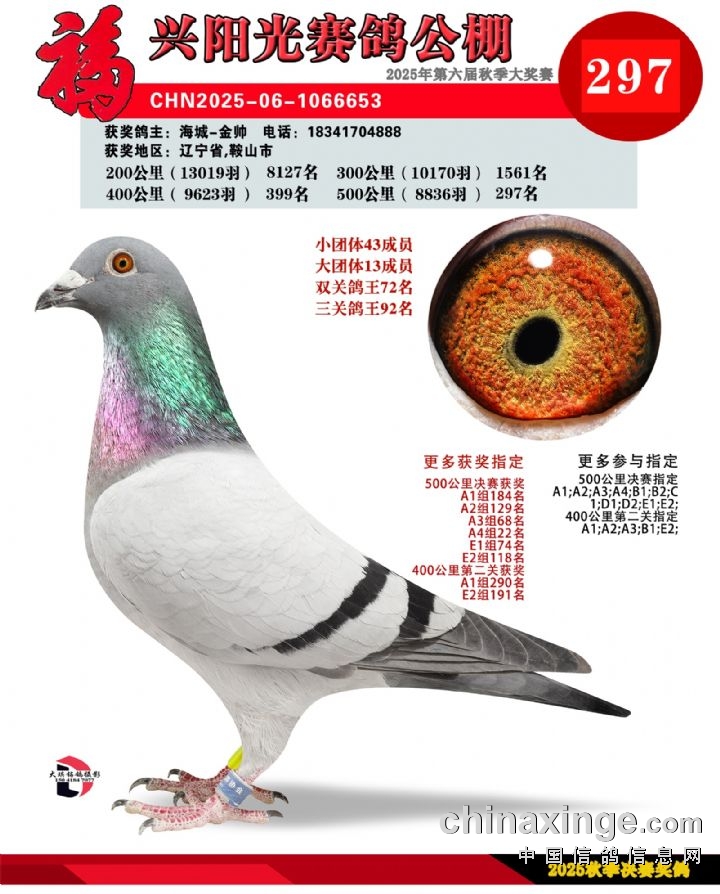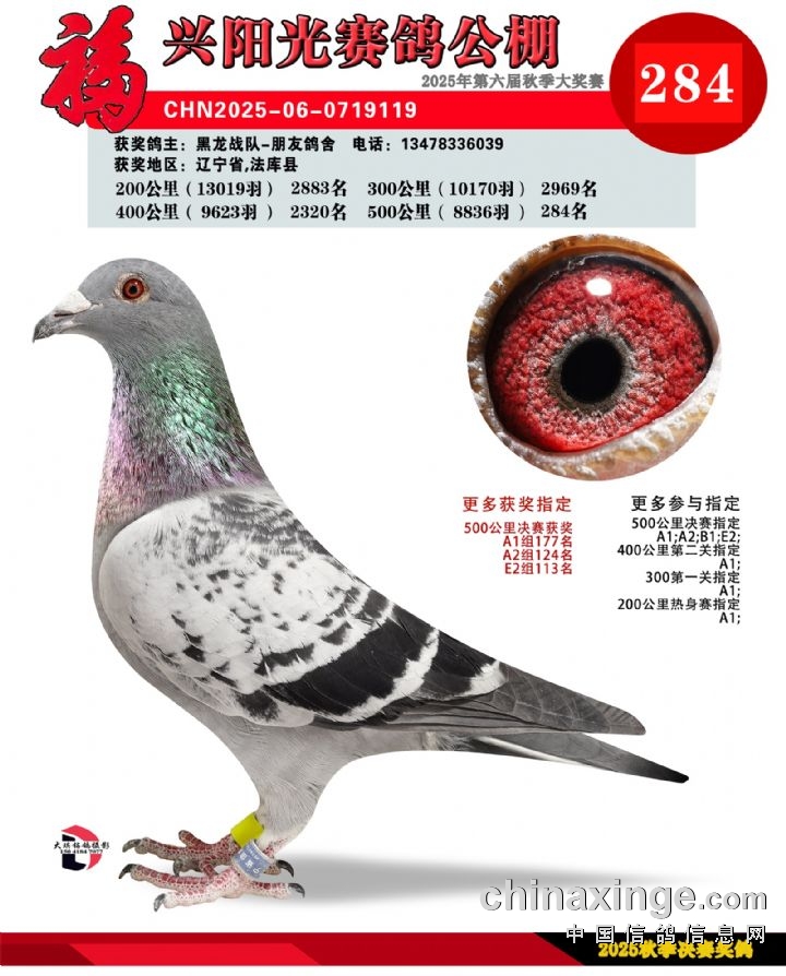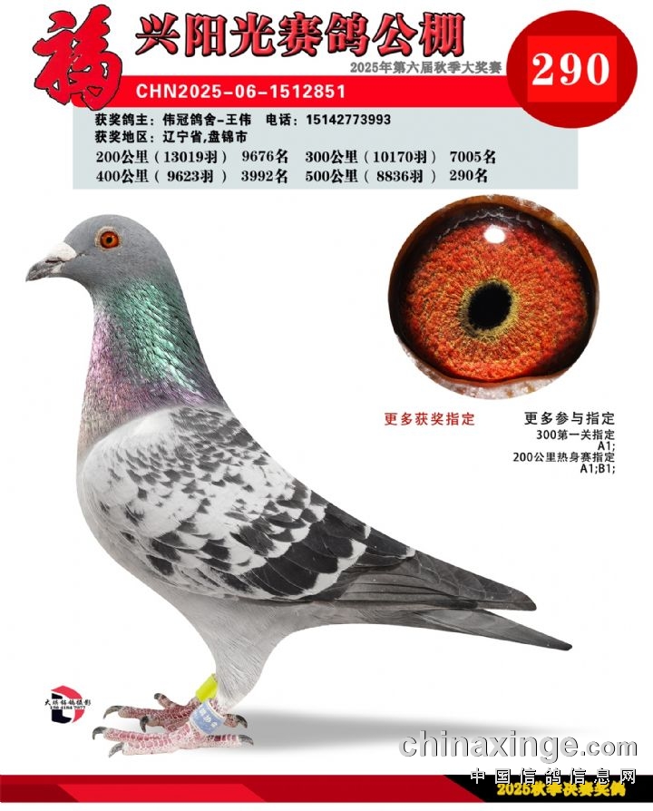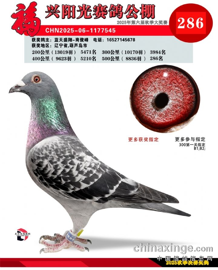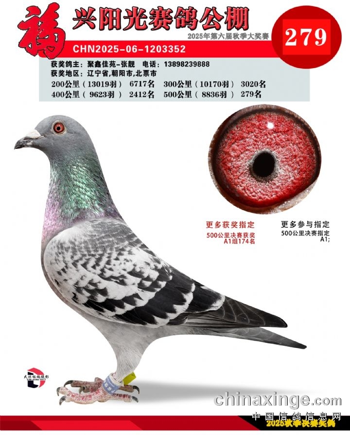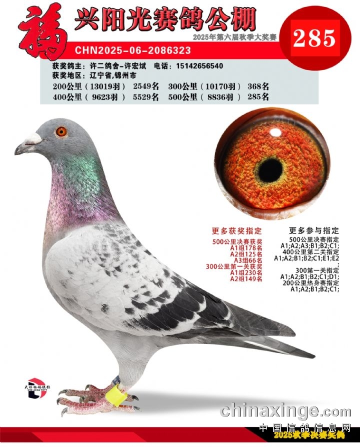 辽宁福兴阳光公棚决赛271名-300名获奖鸽照片