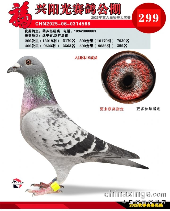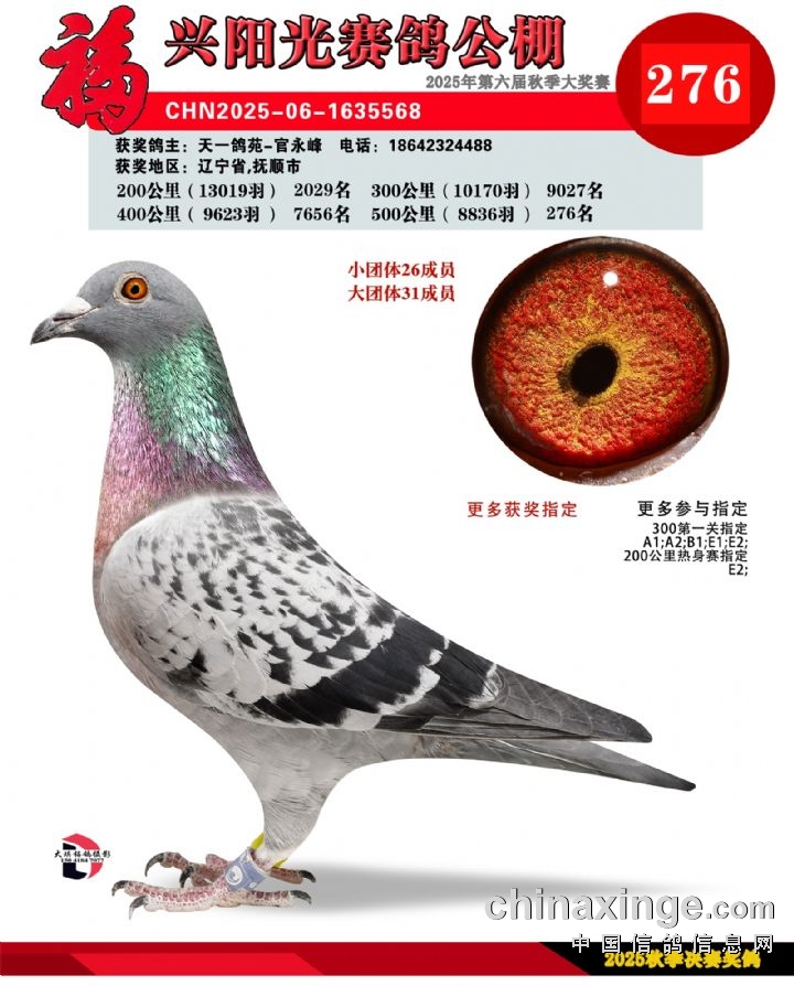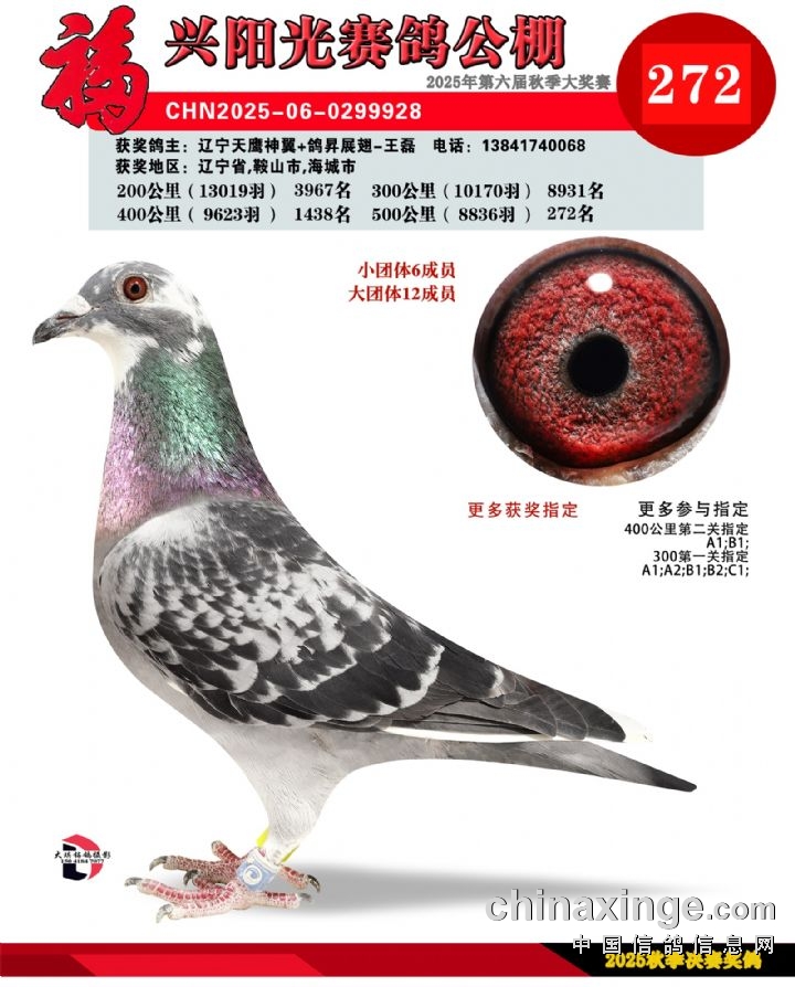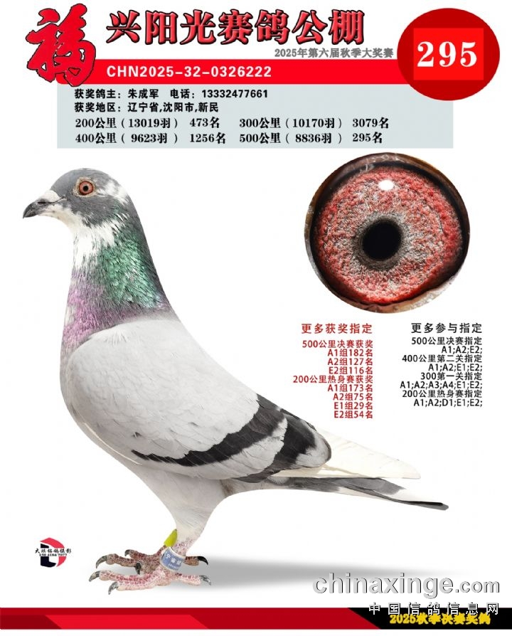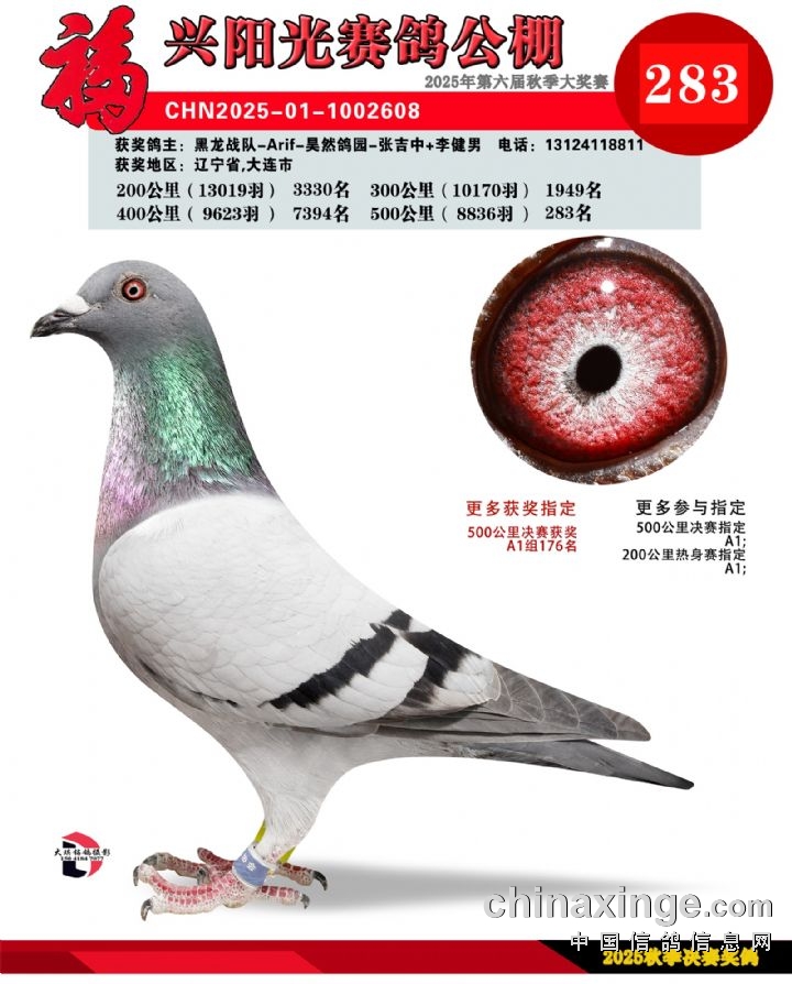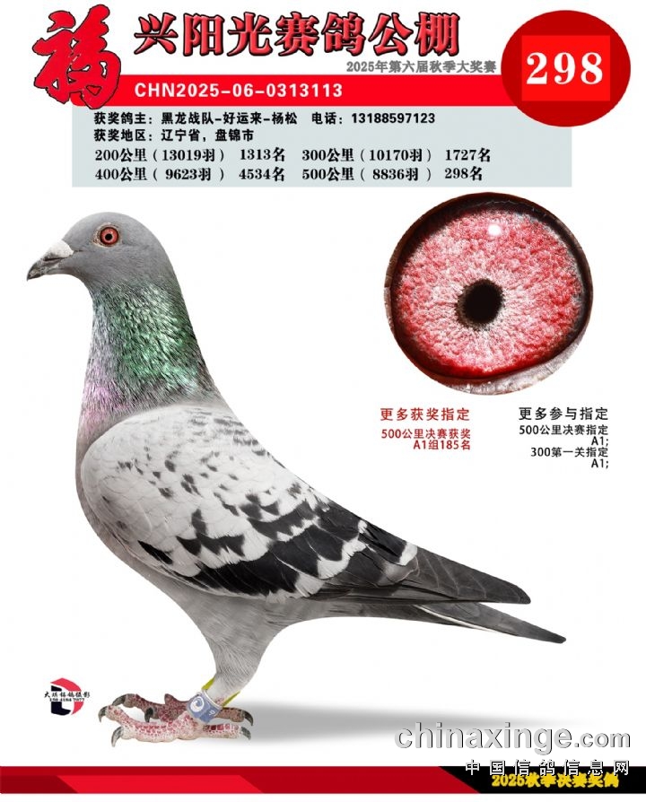 辽宁福兴阳光公棚决赛271名-300名获奖鸽照片