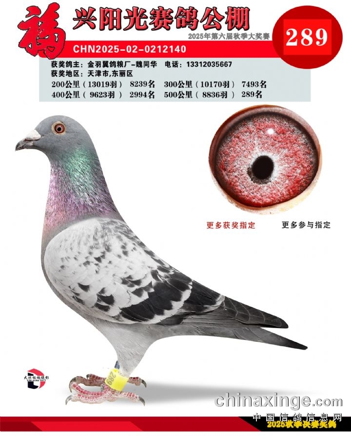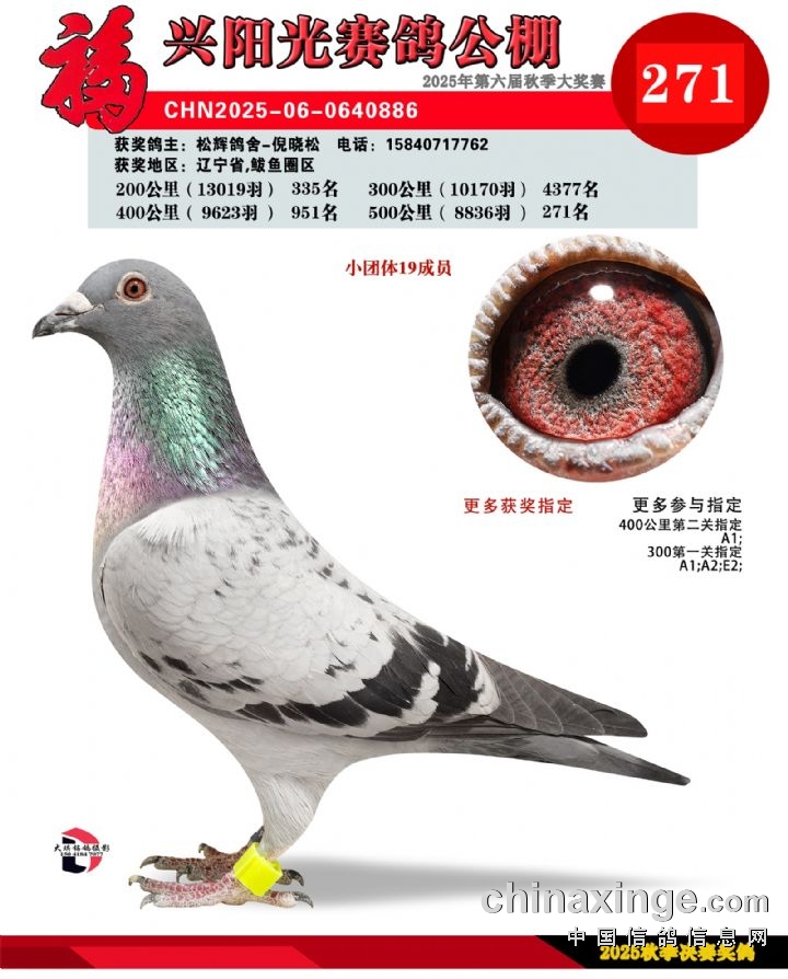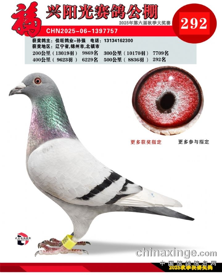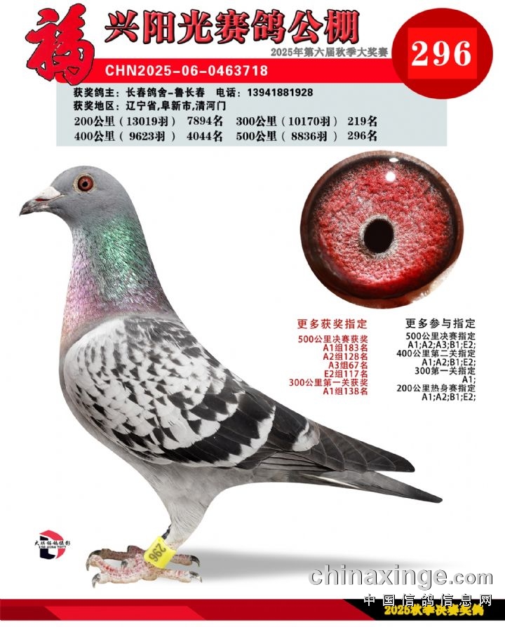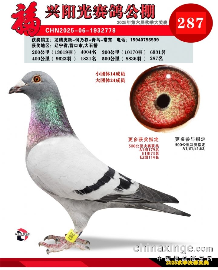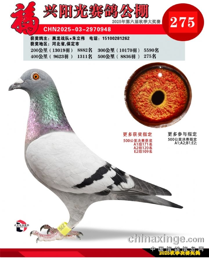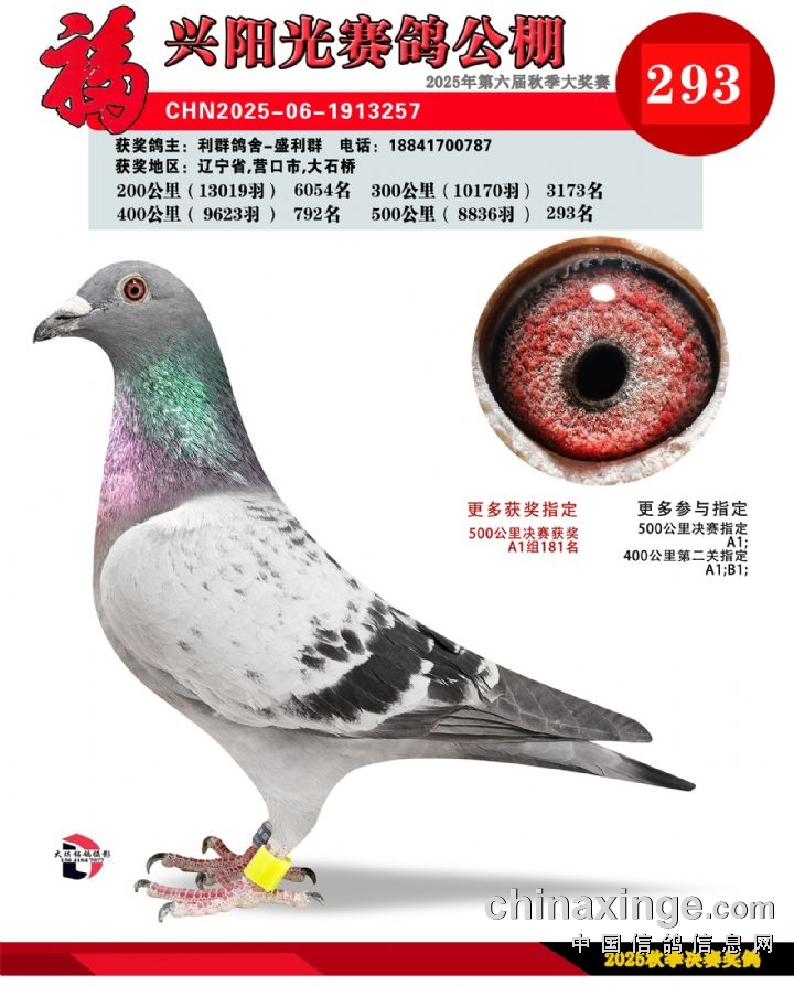 辽宁福兴阳光公棚决赛271名-300名获奖鸽照片