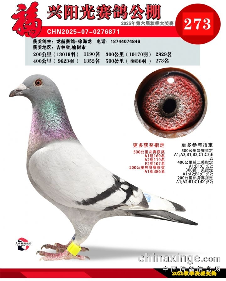 辽宁福兴阳光公棚加站赛91名-135名获奖鸽照片