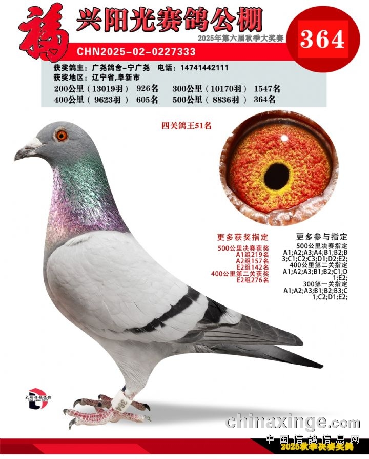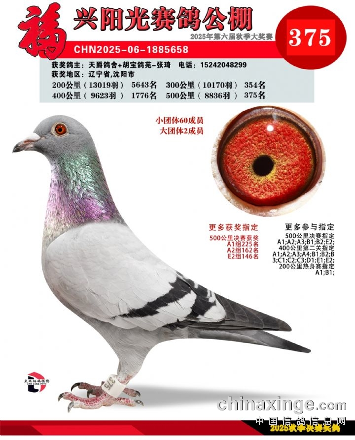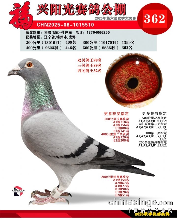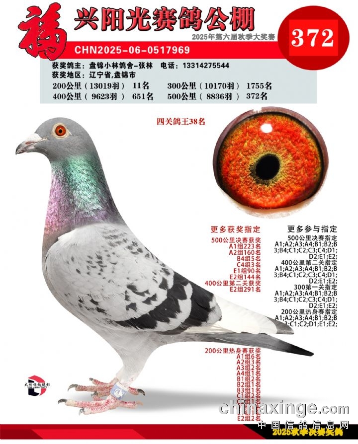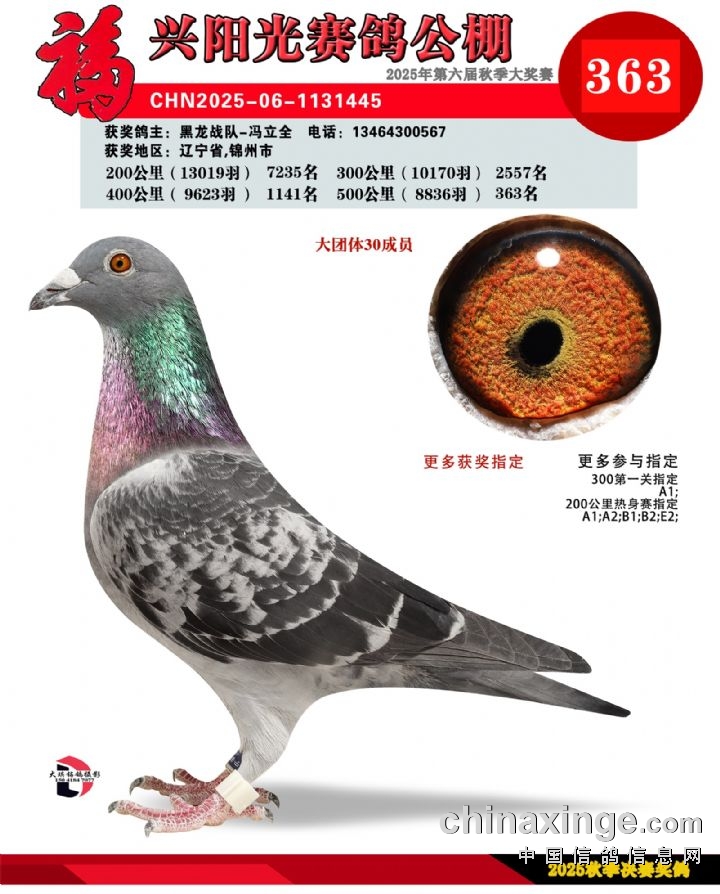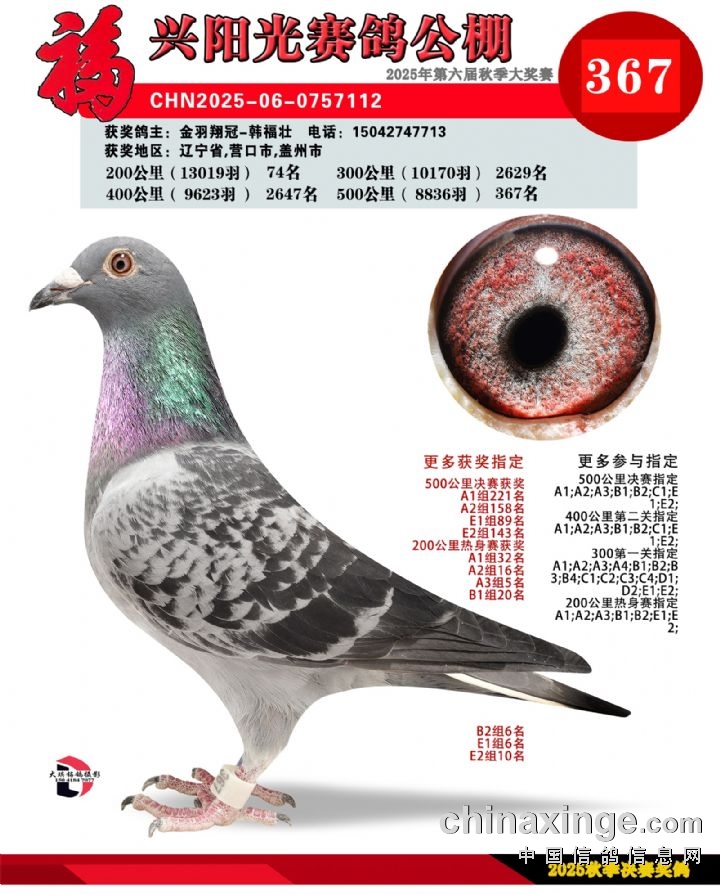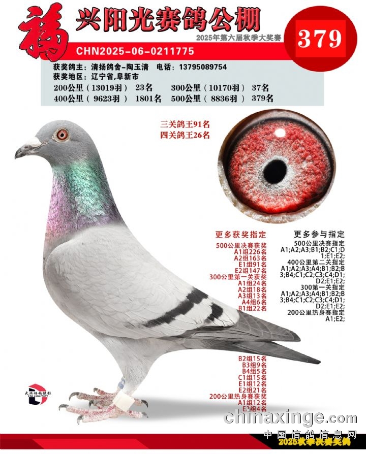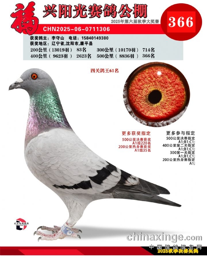 辽宁福兴阳光公棚决赛361名-390名获奖鸽照片