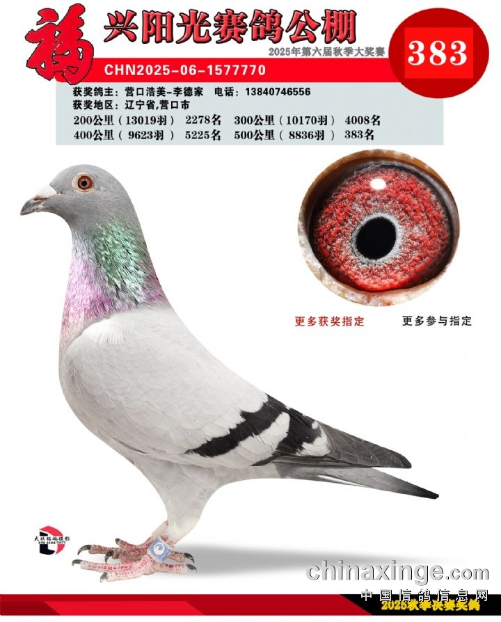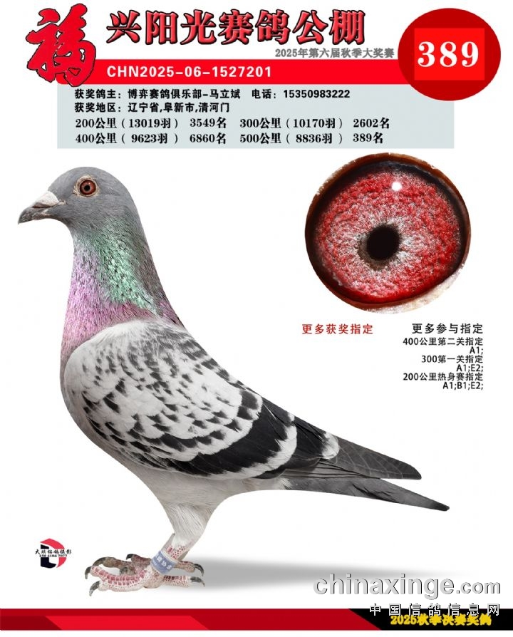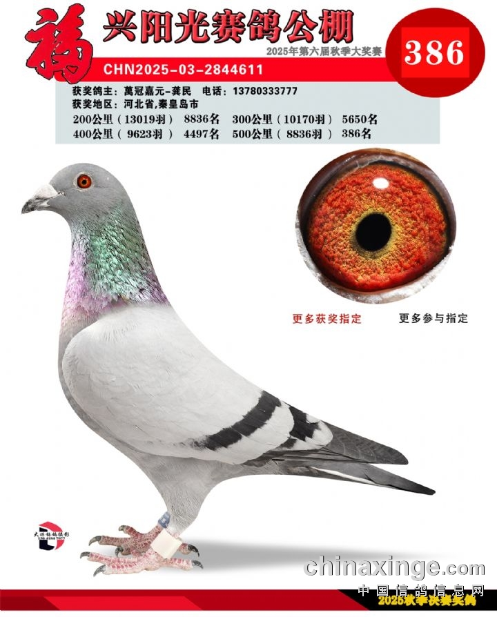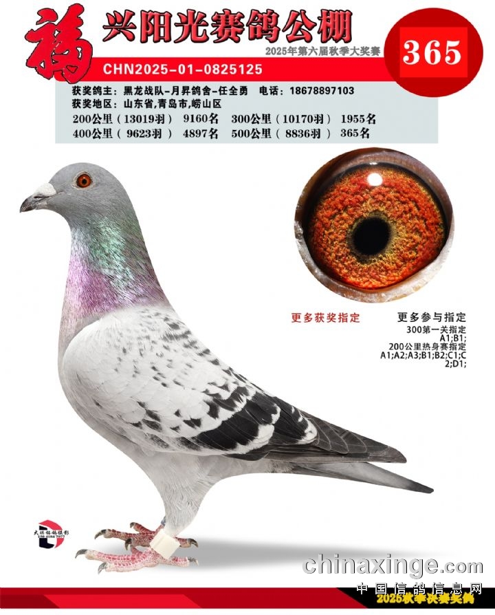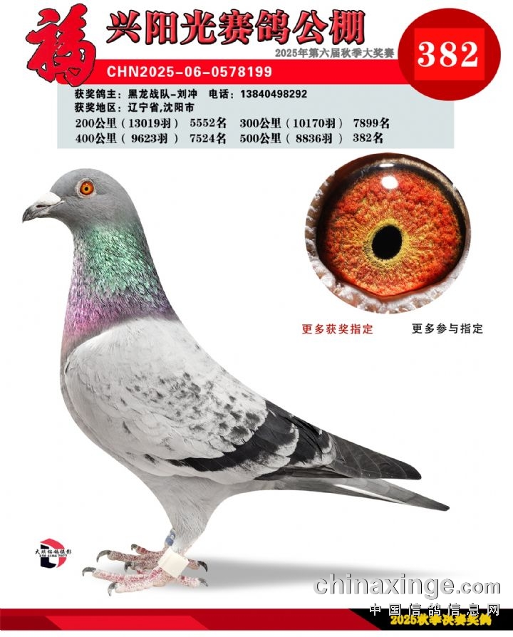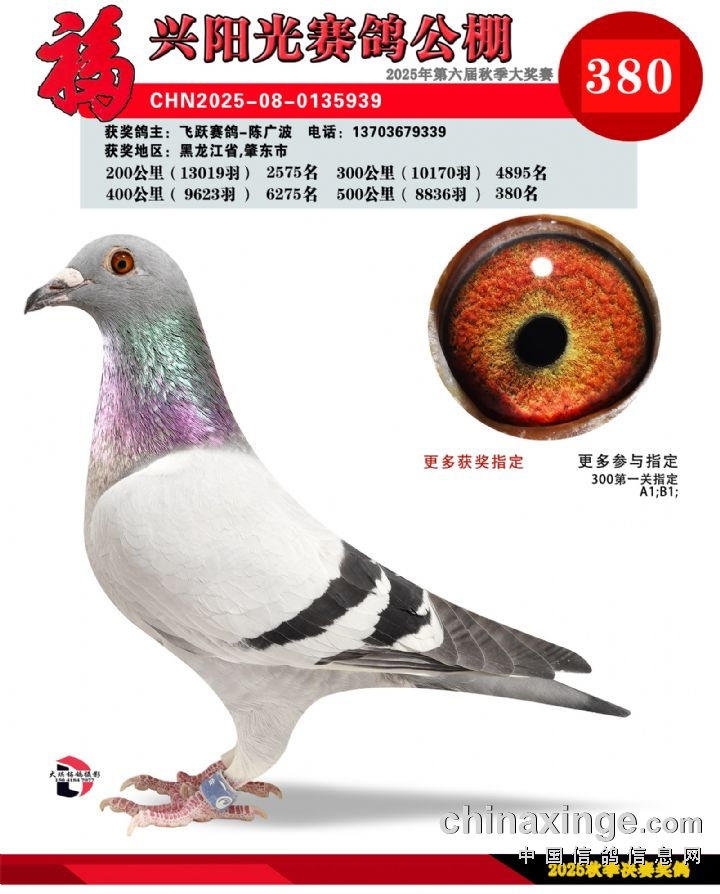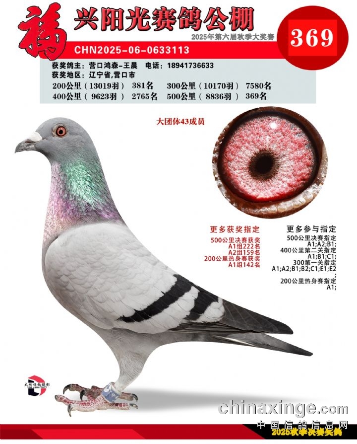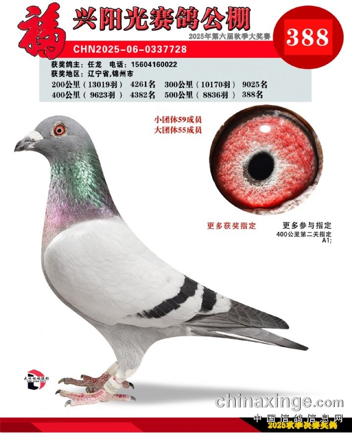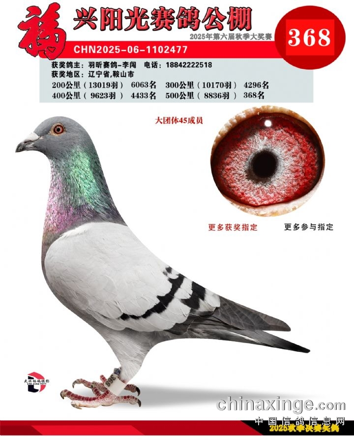 辽宁福兴阳光公棚决赛361名-390名获奖鸽照片
