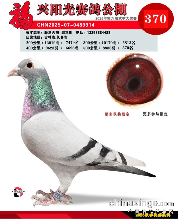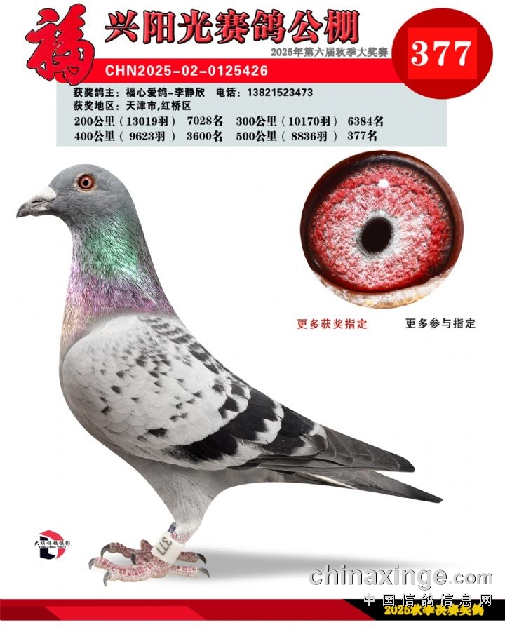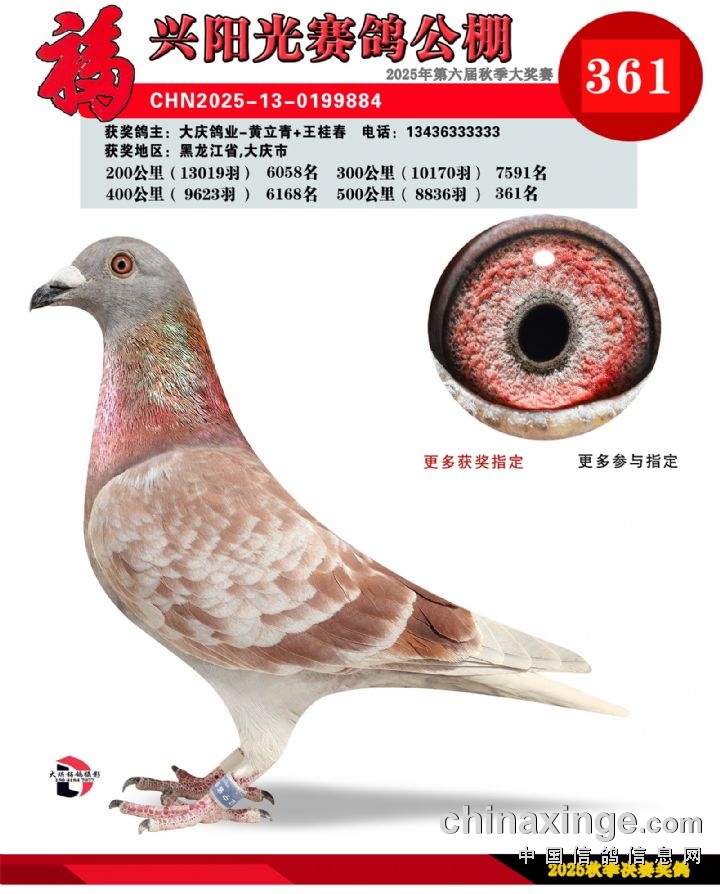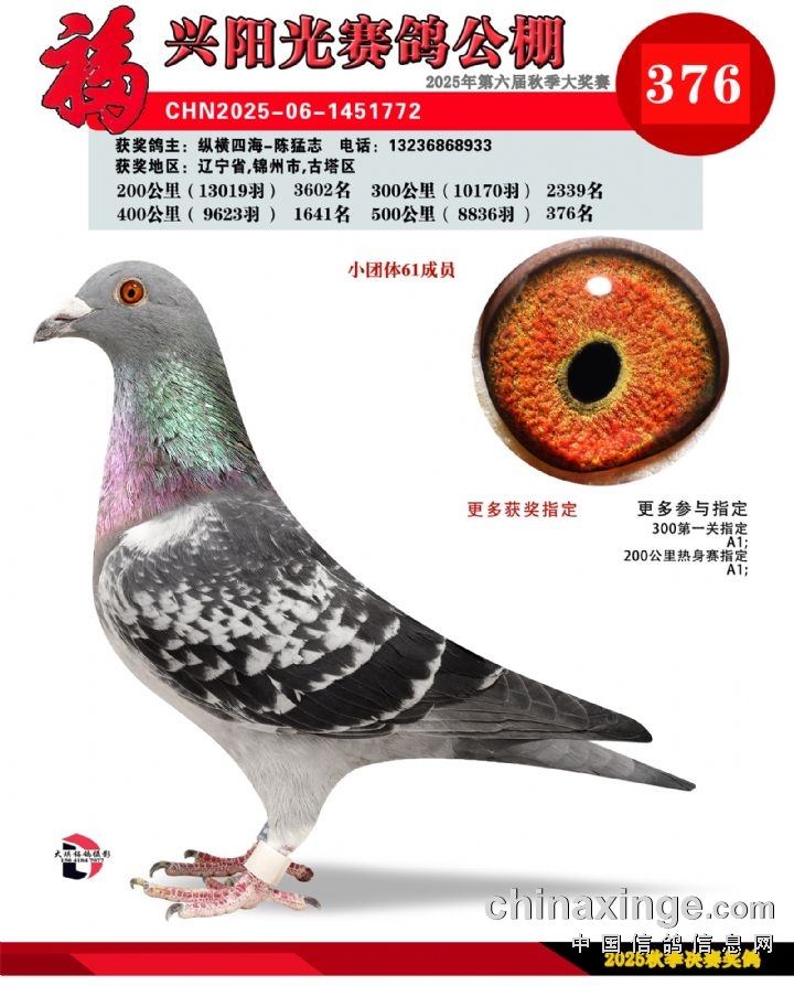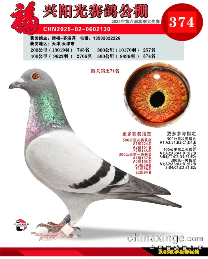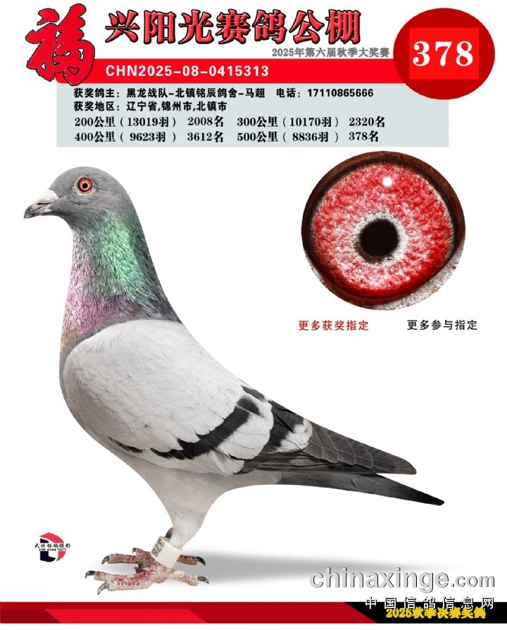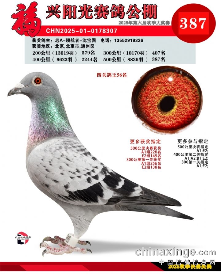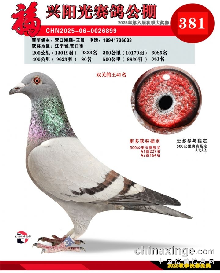 辽宁福兴阳光公棚决赛361名-390名获奖鸽照片