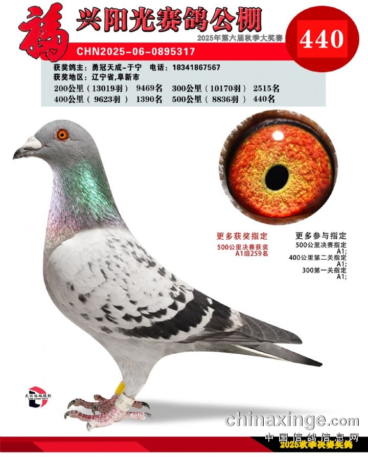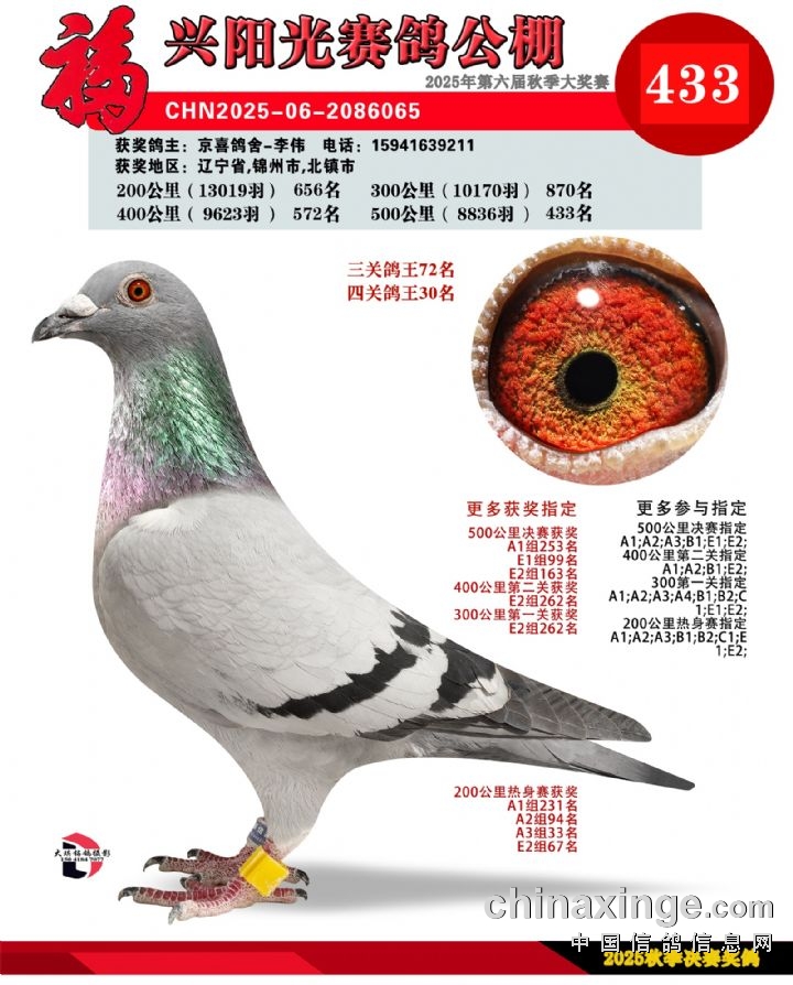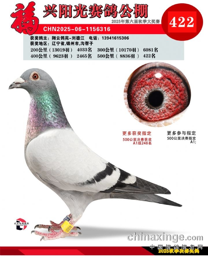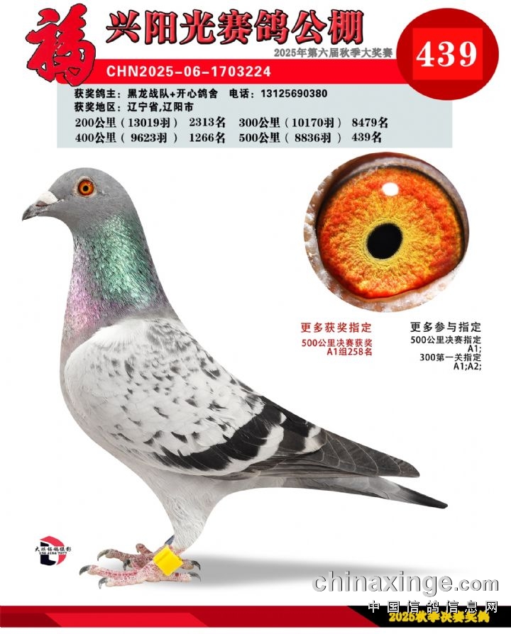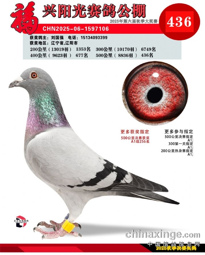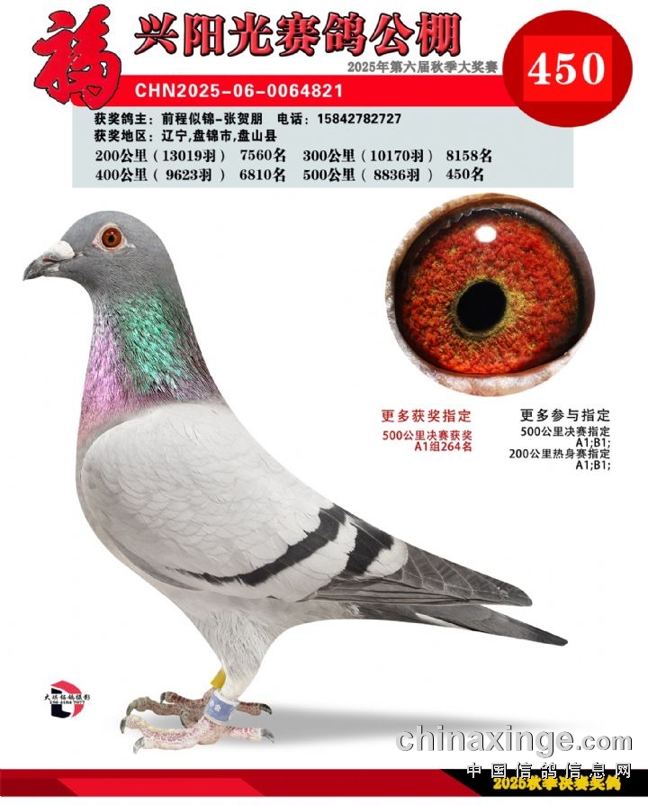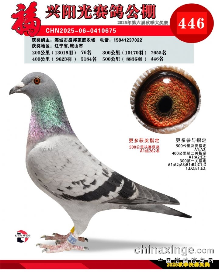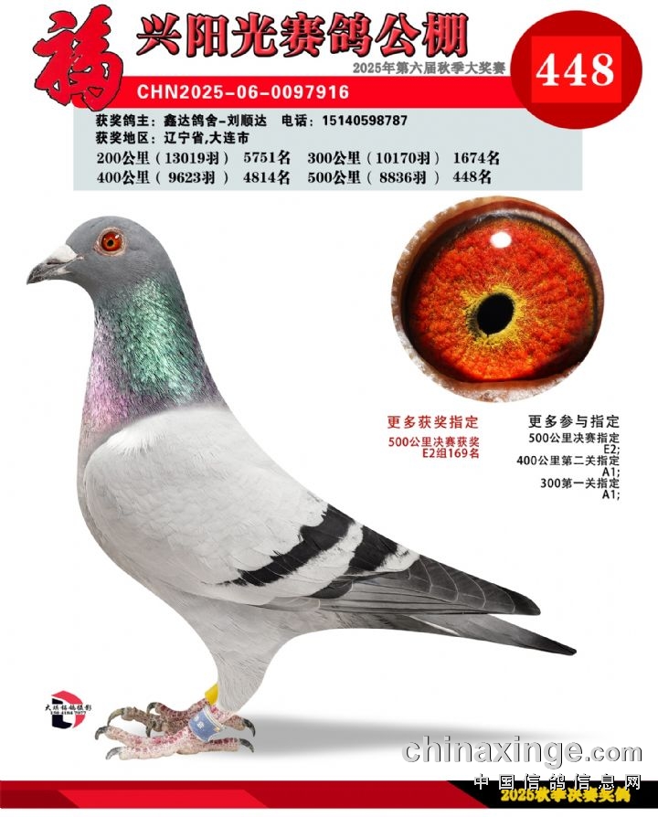 辽宁福兴阳光公棚决赛421名-450名获奖鸽照片