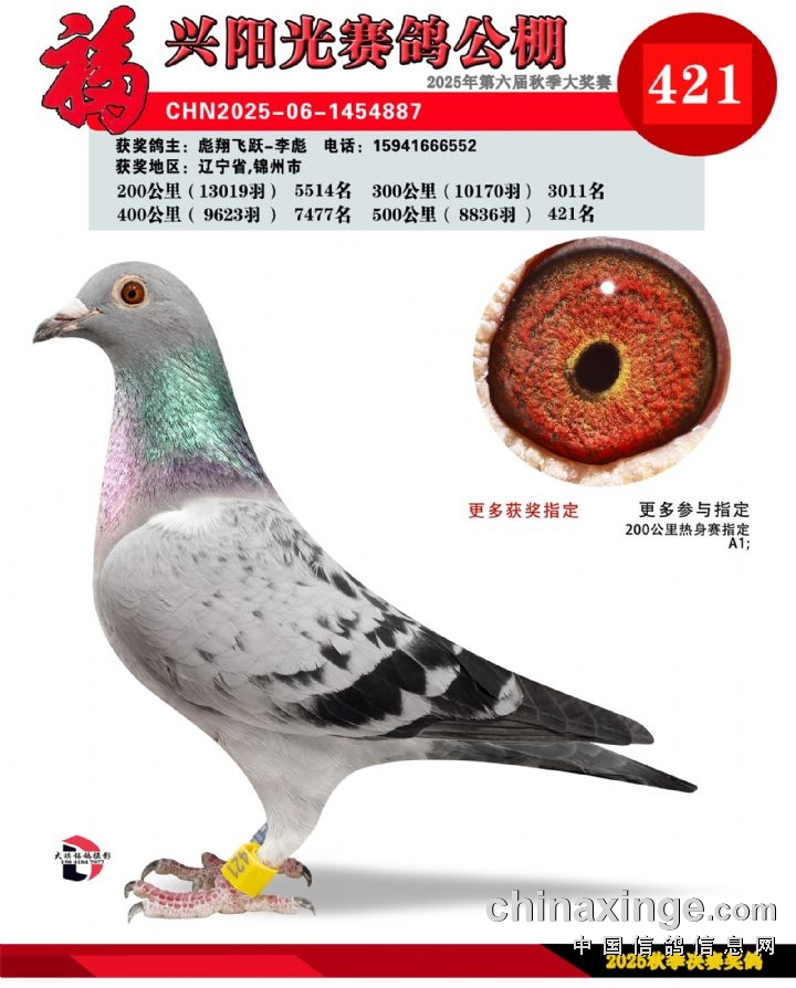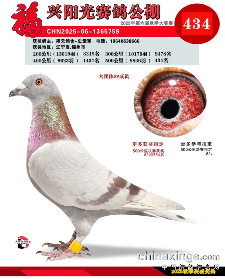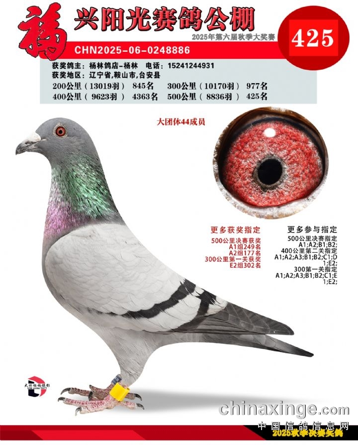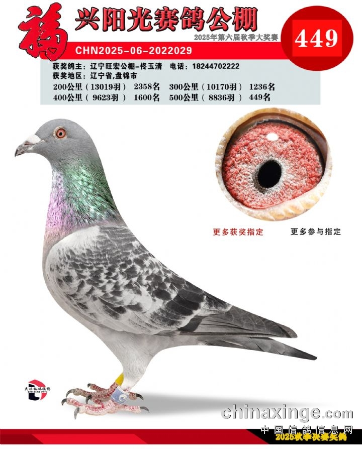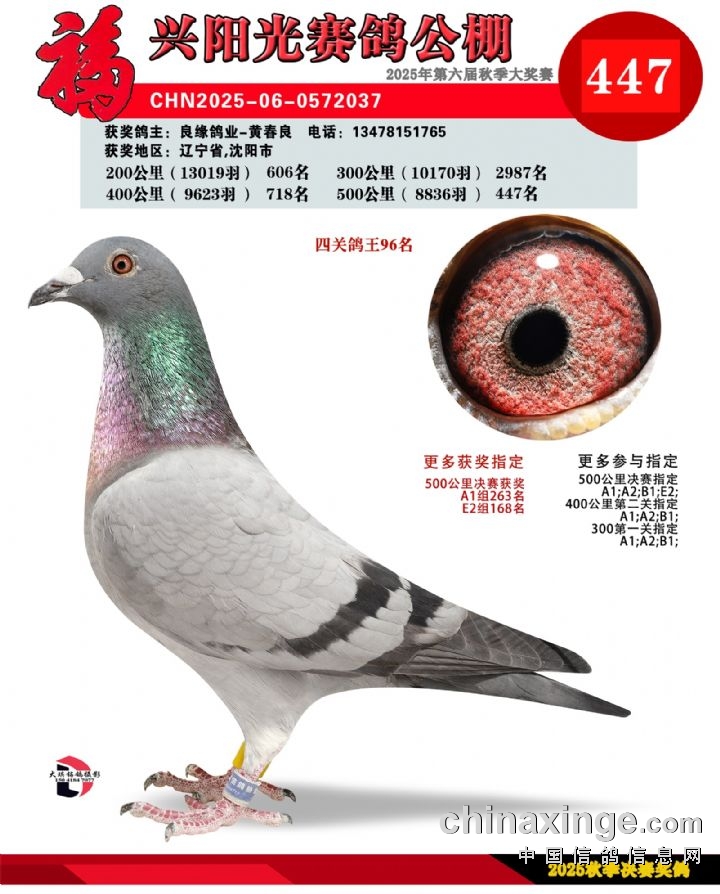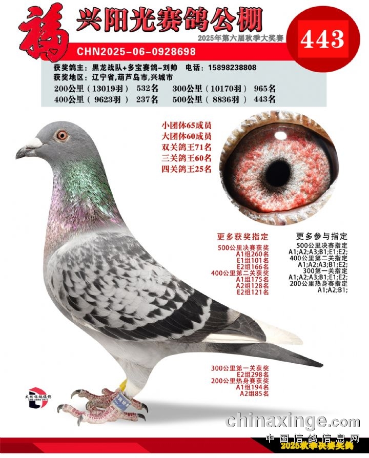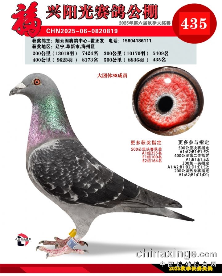 辽宁福兴阳光公棚决赛421名-450名获奖鸽照片
