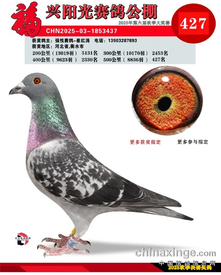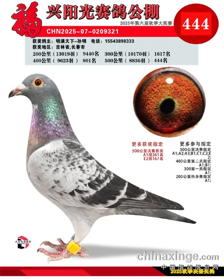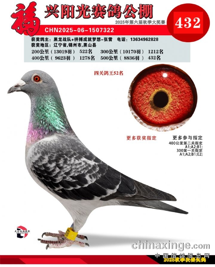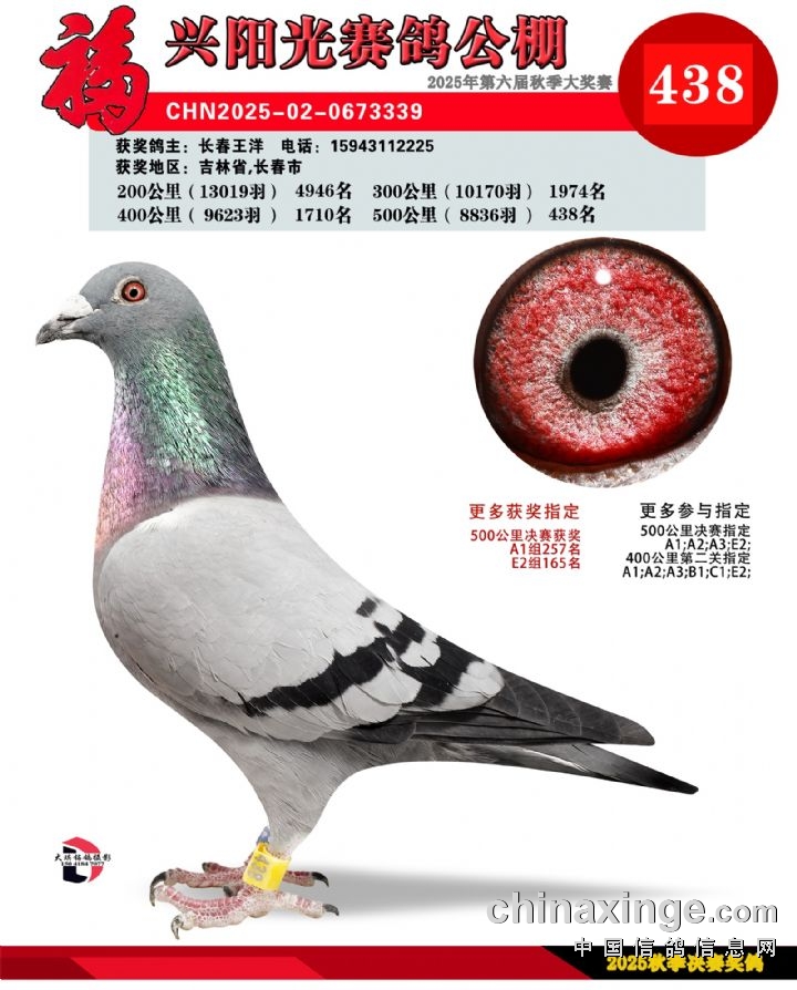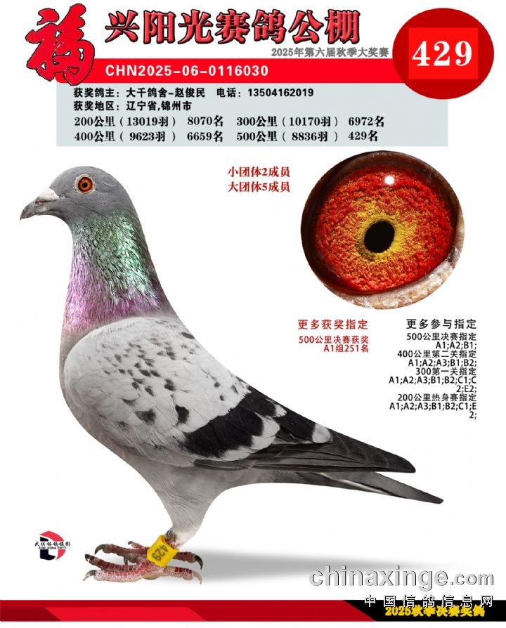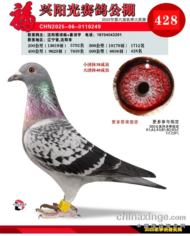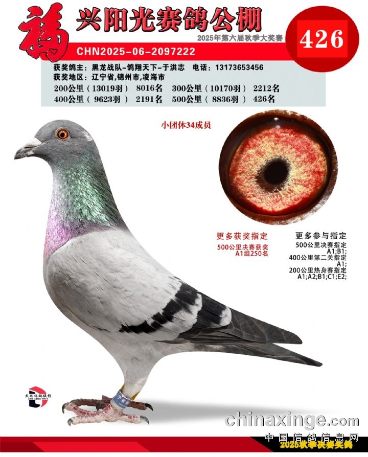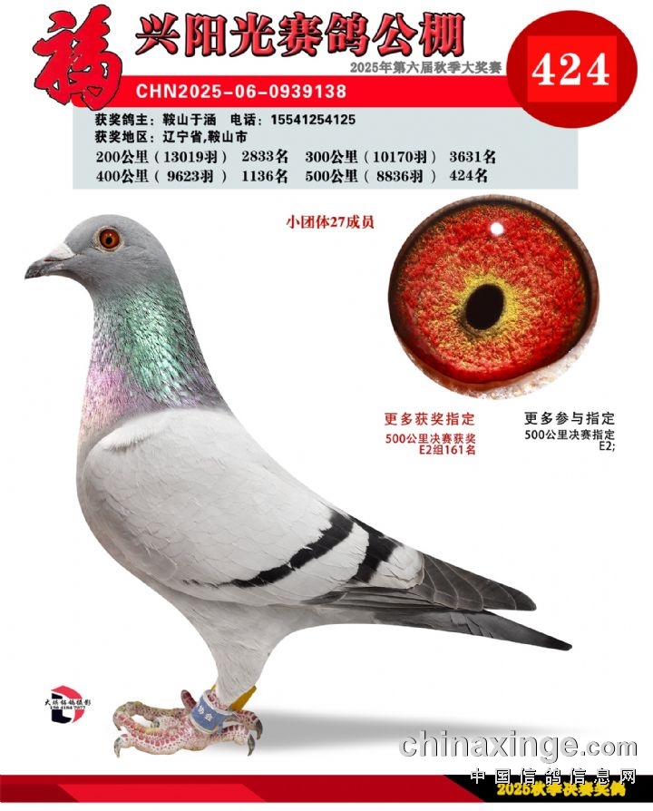 辽宁福兴阳光公棚决赛421名-450名获奖鸽照片
