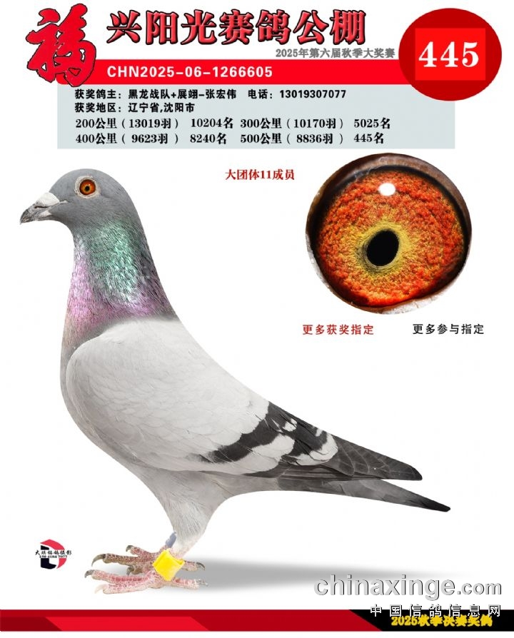 • 辽宁福兴阳光公棚加站赛61名-90名获奖鸽照片 (2025-11-5 9:42:46)