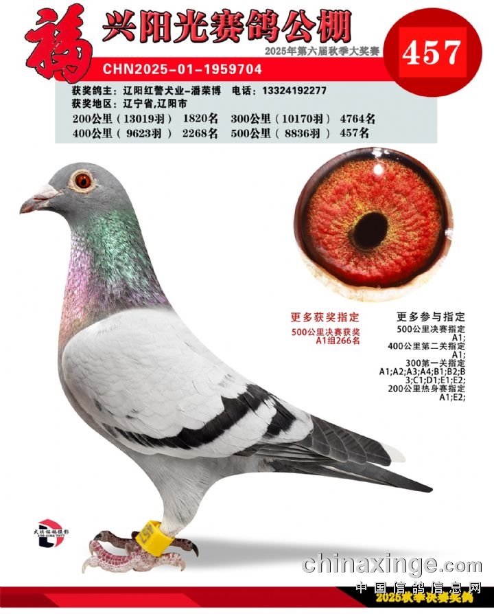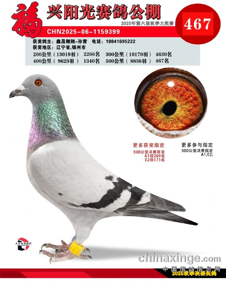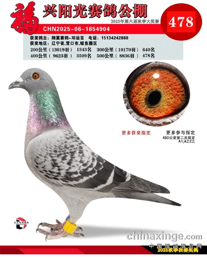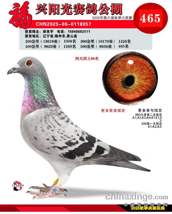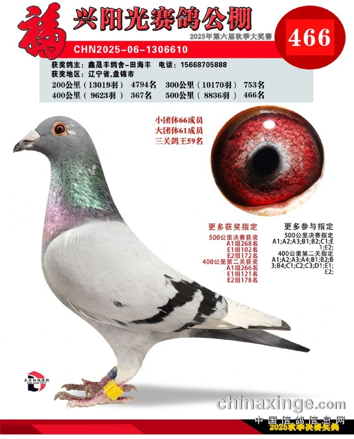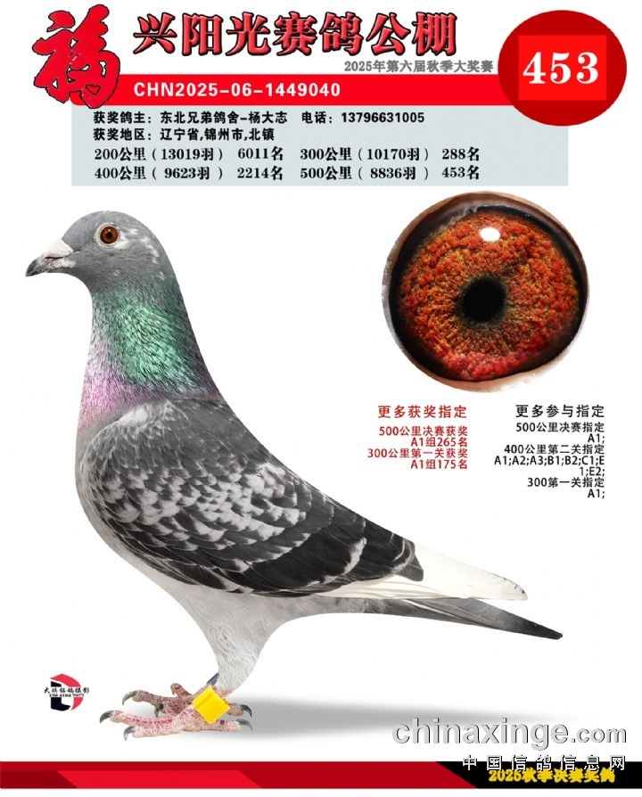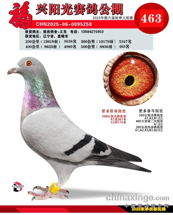辽宁福兴阳光公棚决赛451名-480名获奖鸽照片