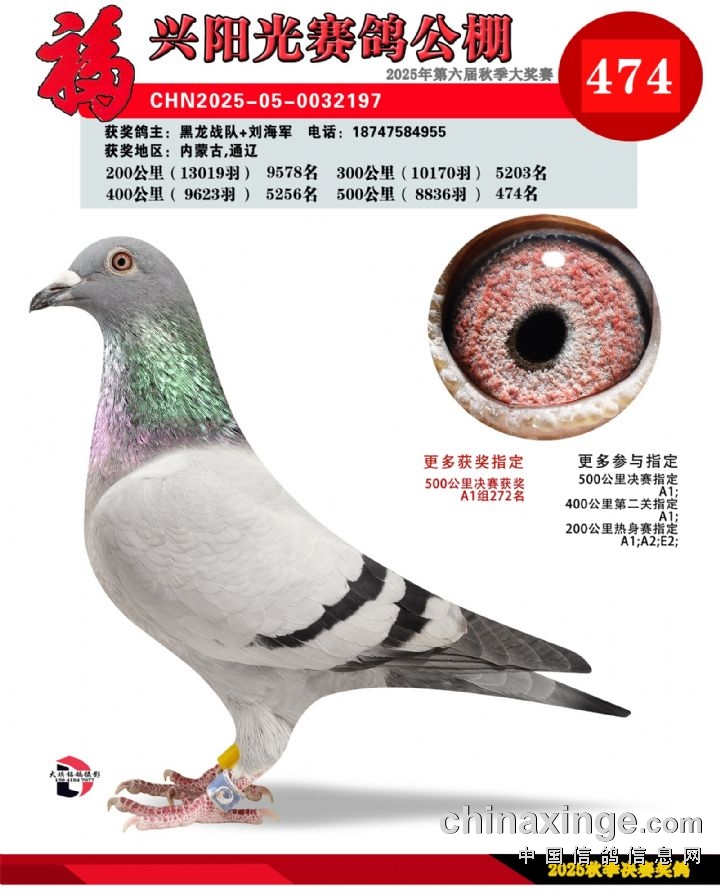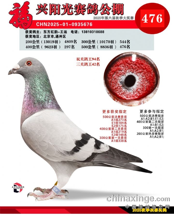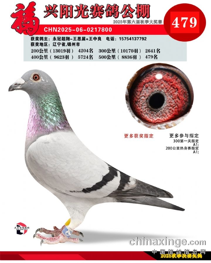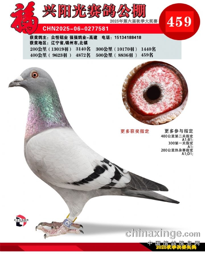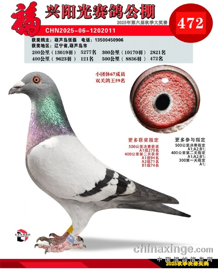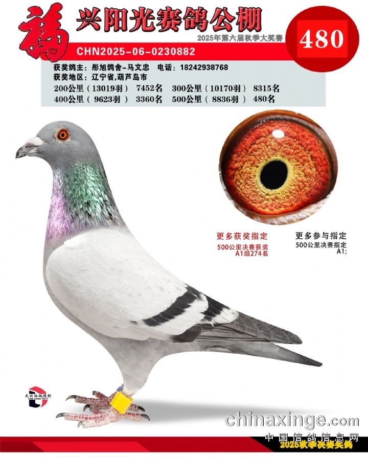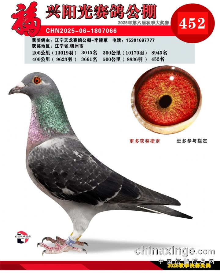 辽宁福兴阳光公棚决赛451名-480名获奖鸽照片