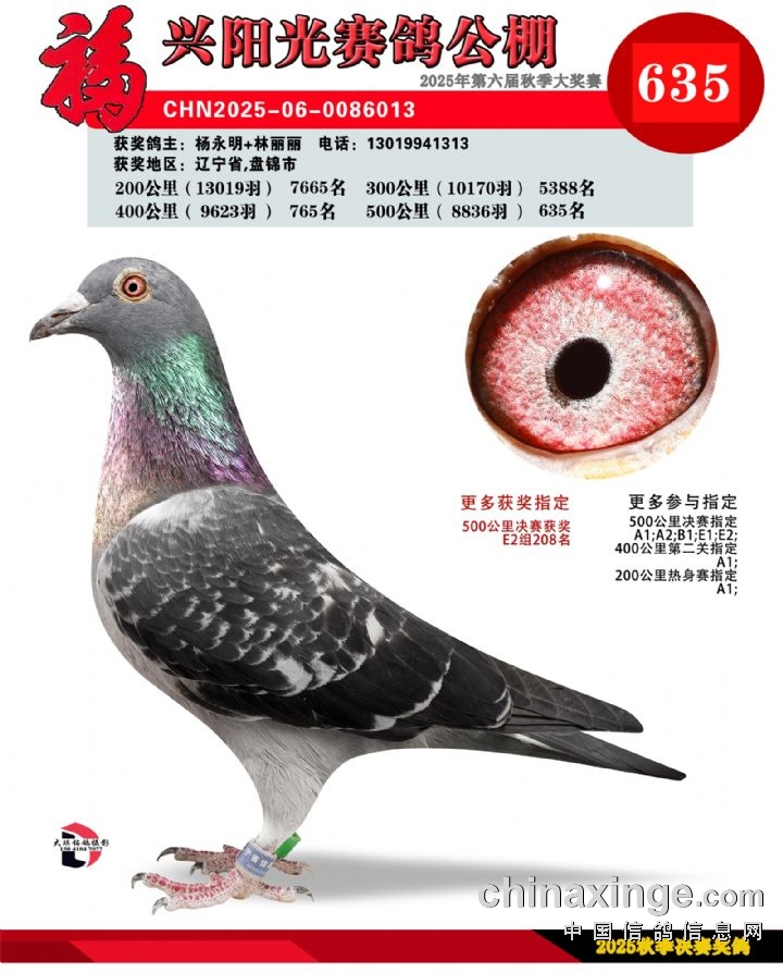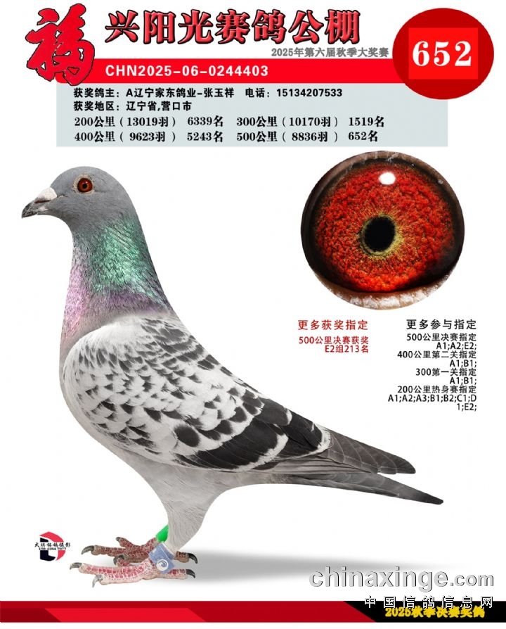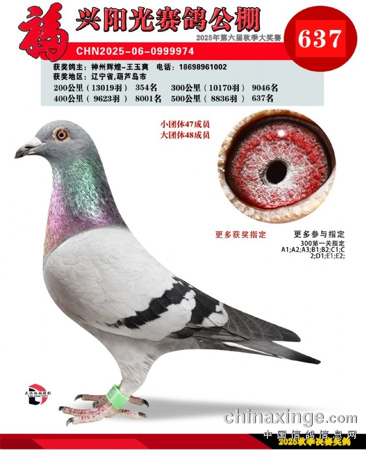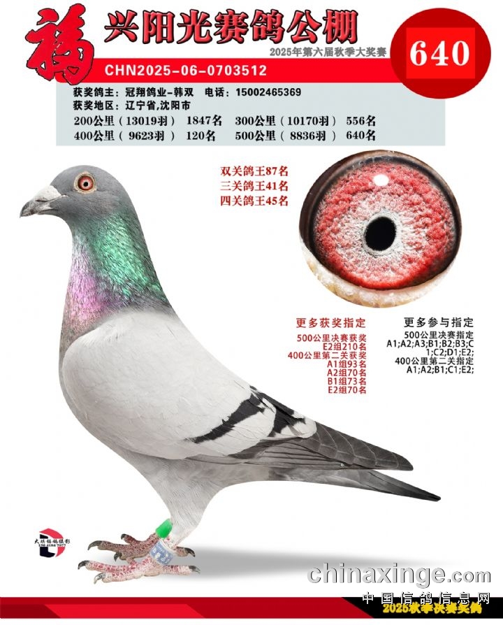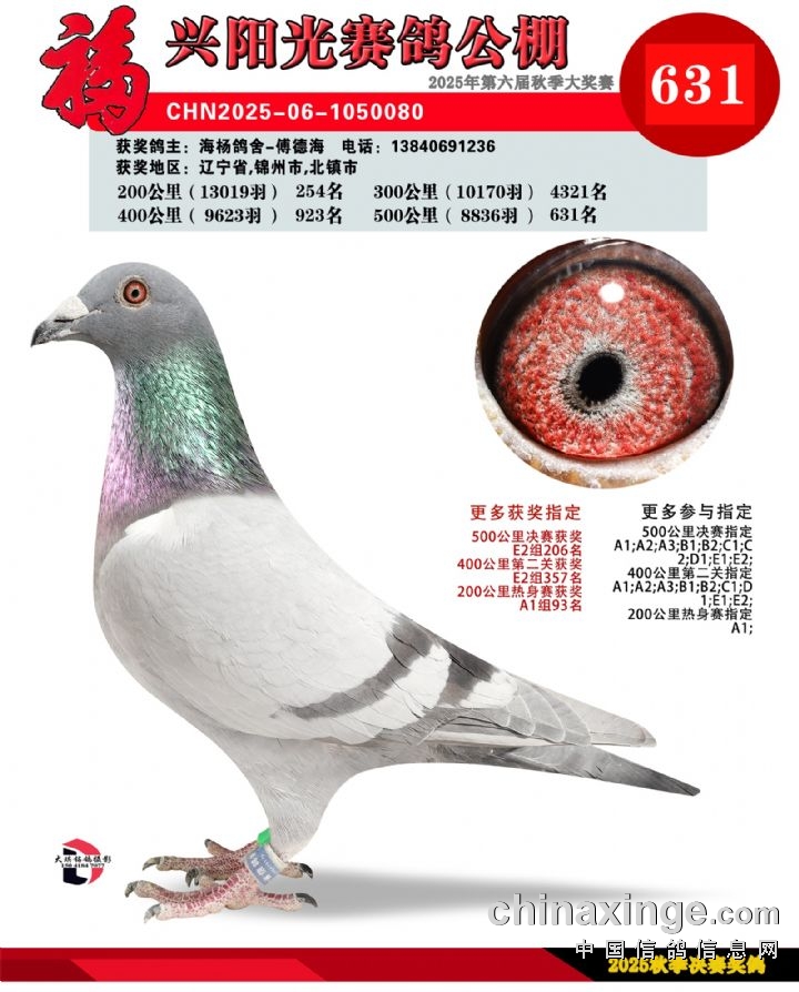 辽宁福兴阳光公棚决赛631名-660名获奖鸽照片