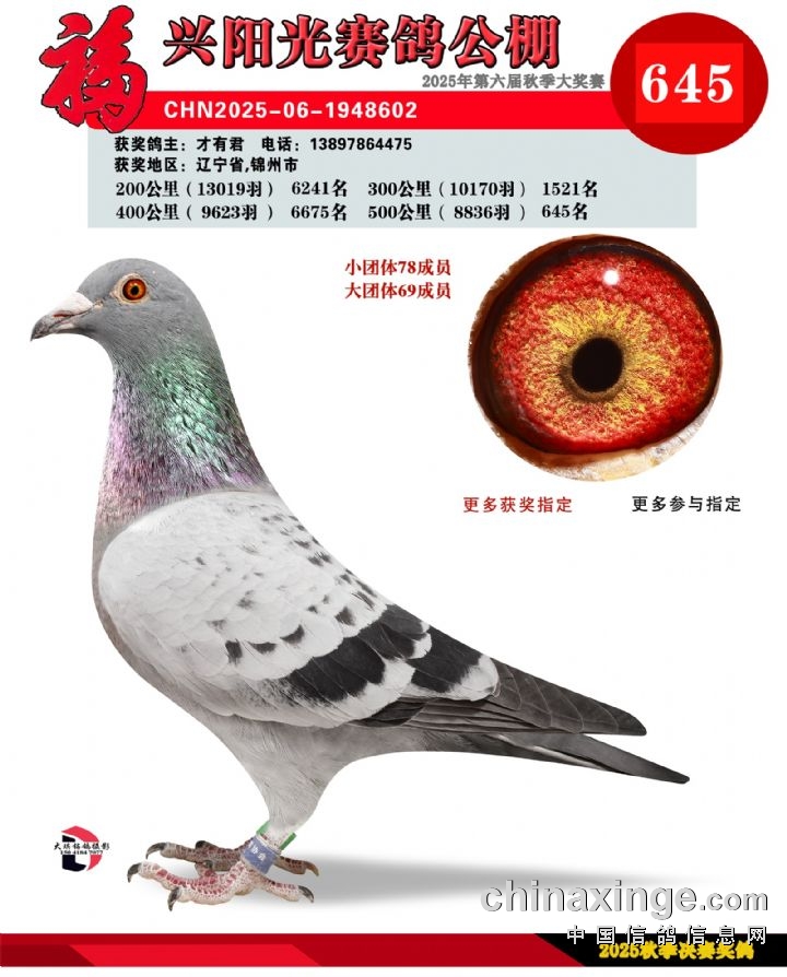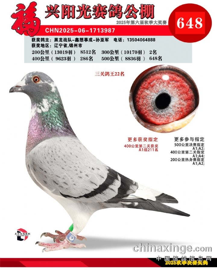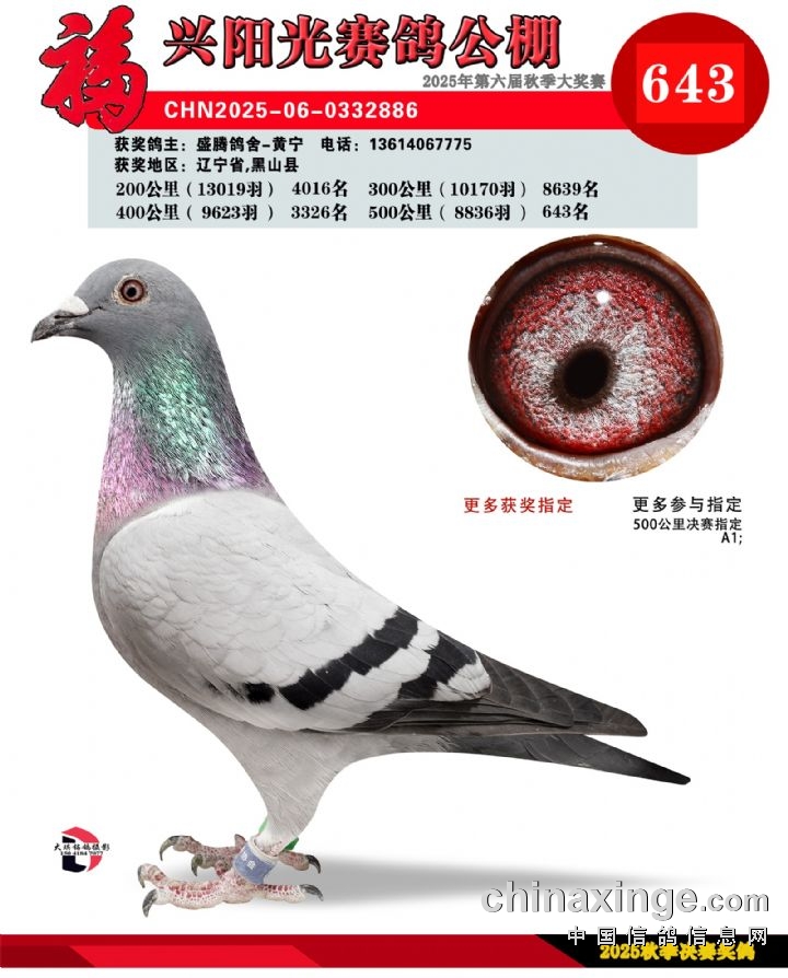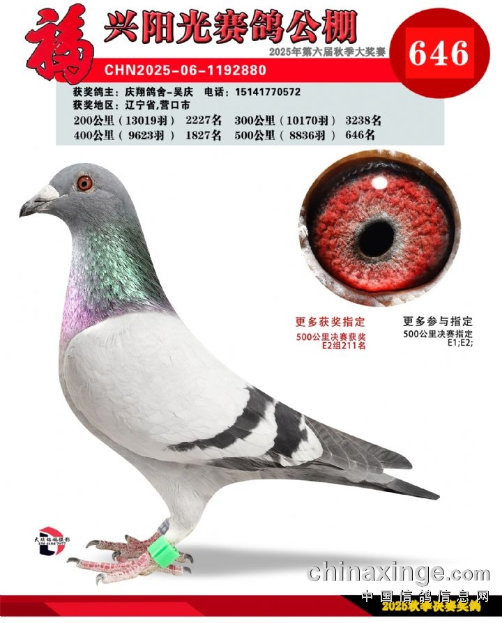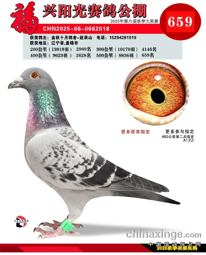 辽宁福兴阳光公棚决赛631名-660名获奖鸽照片