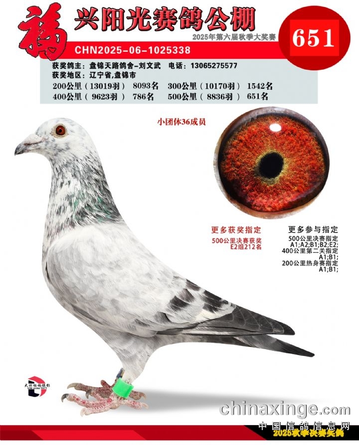 • 辽宁福兴阳光公棚加站赛冠军-30名获奖鸽照片 (2025-11-5 9:30:42)