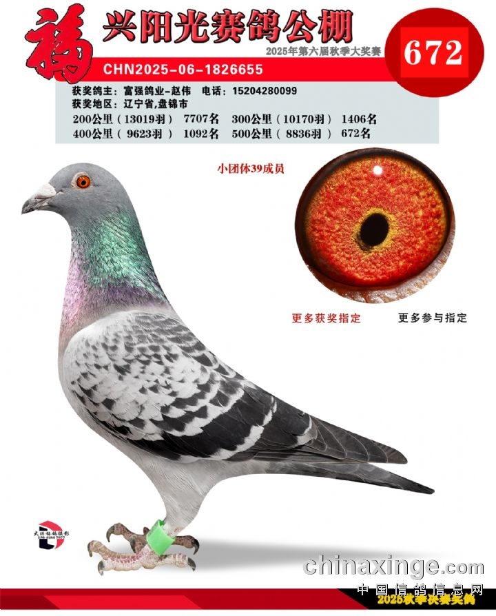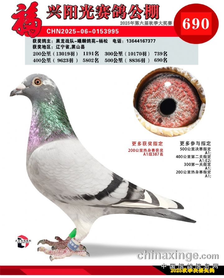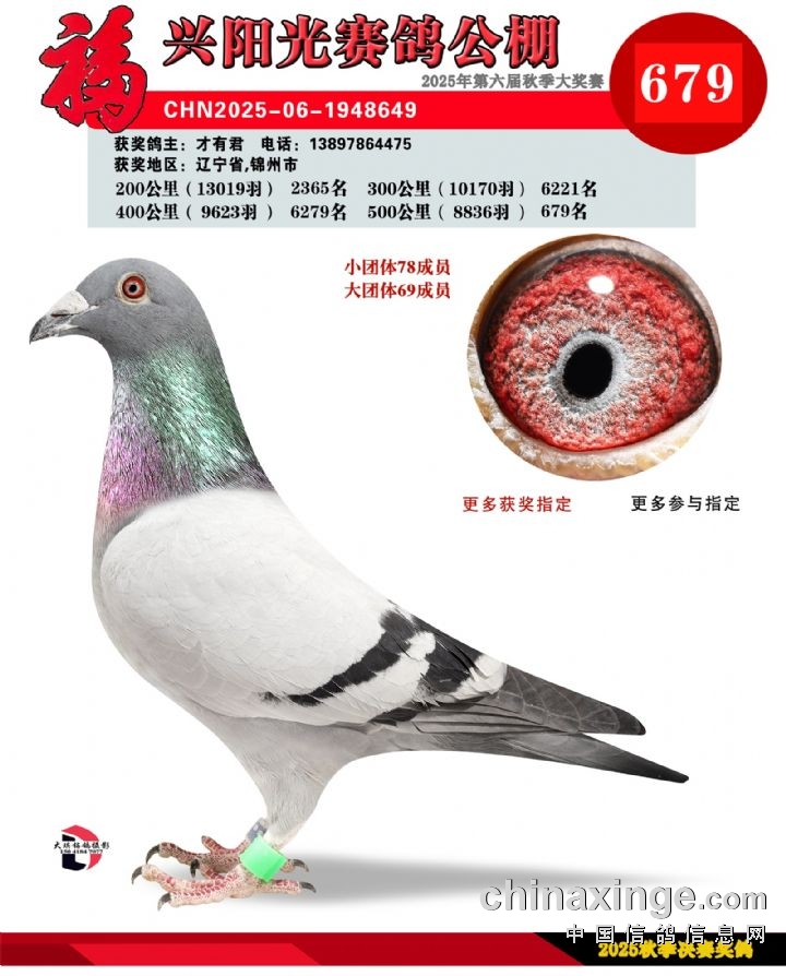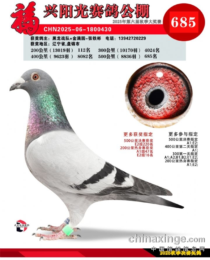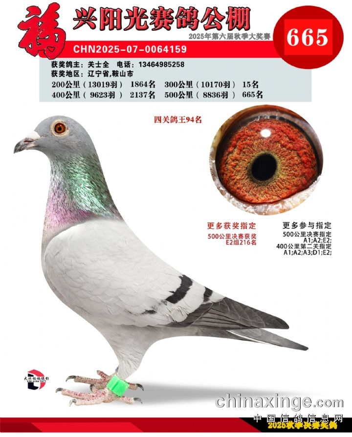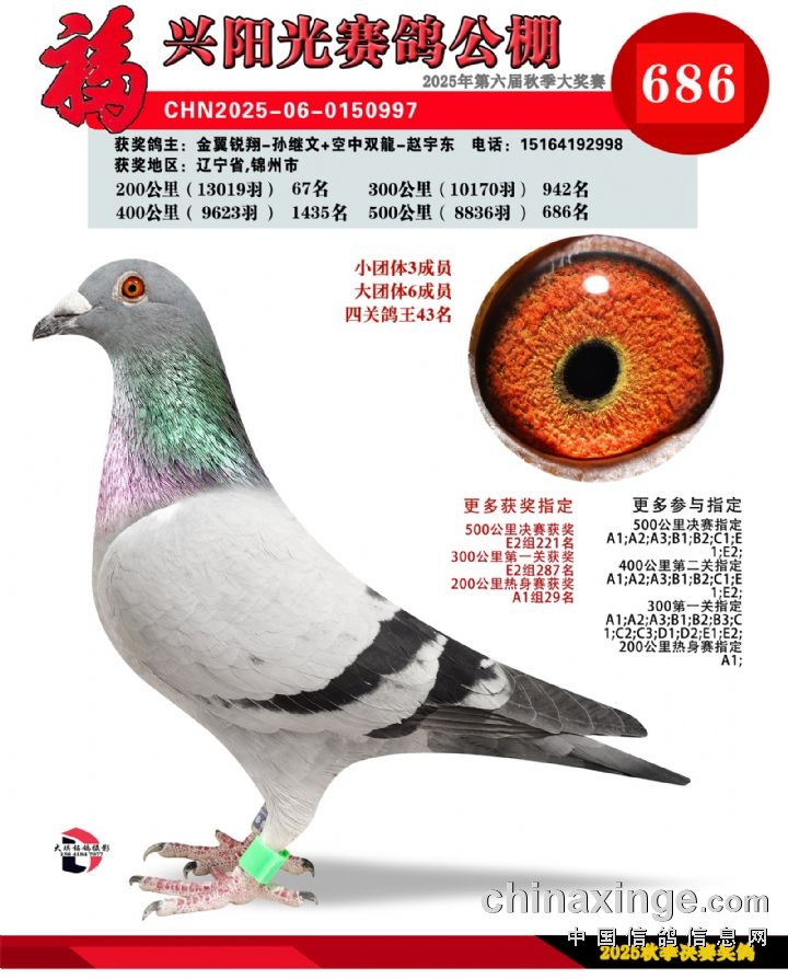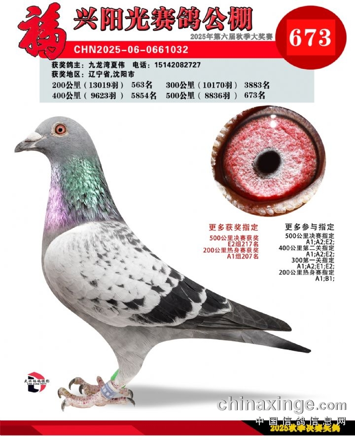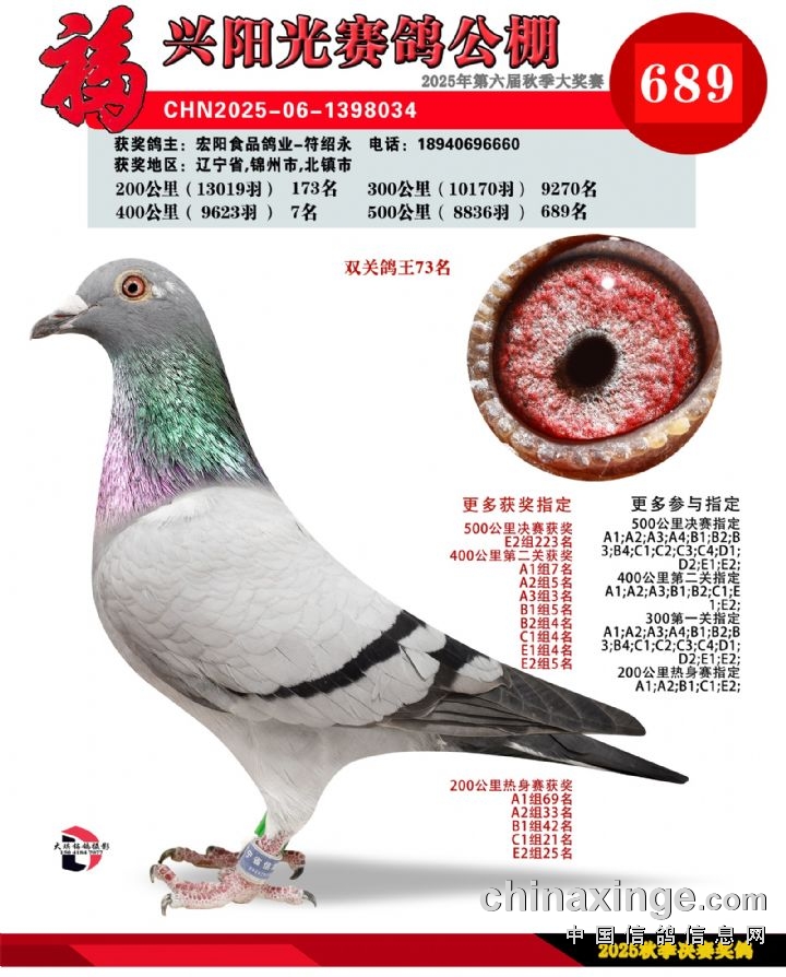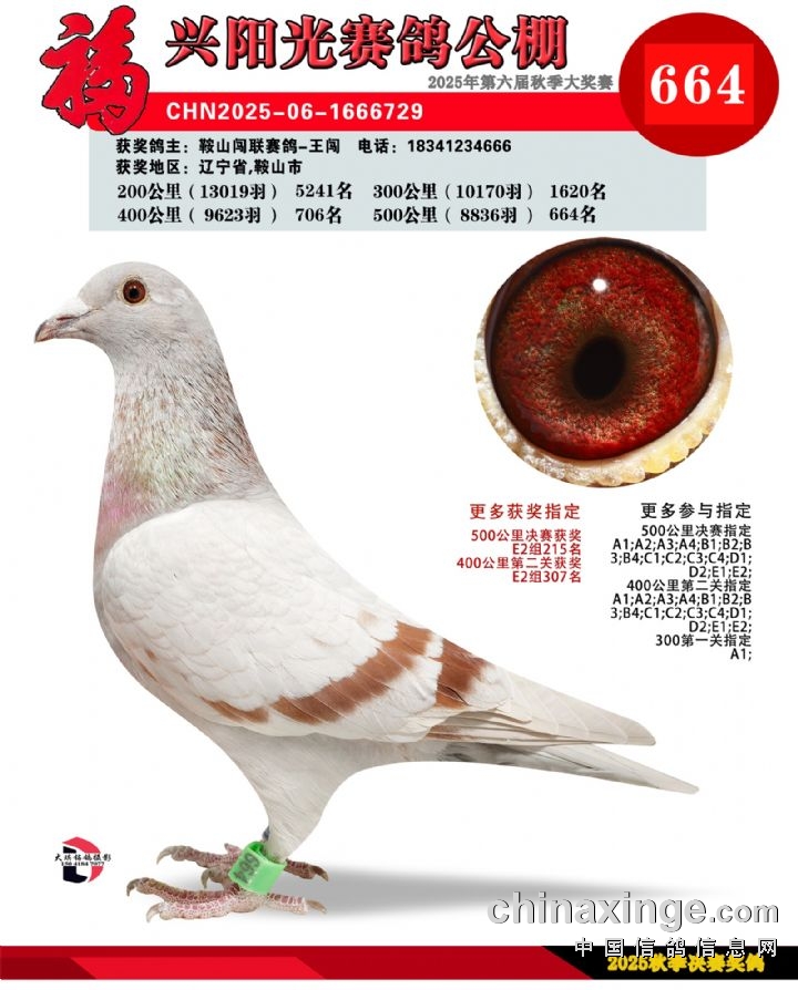 辽宁福兴阳光公棚决赛661名-690名获奖鸽照片