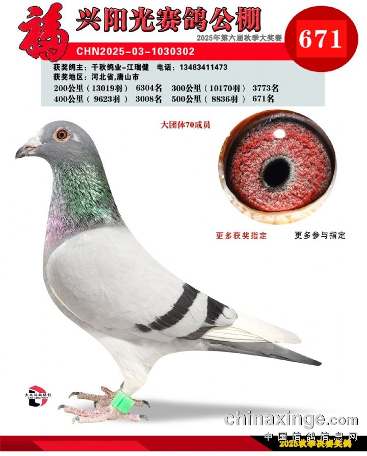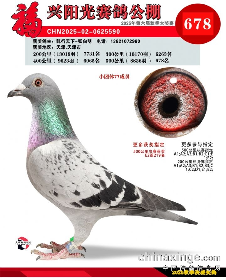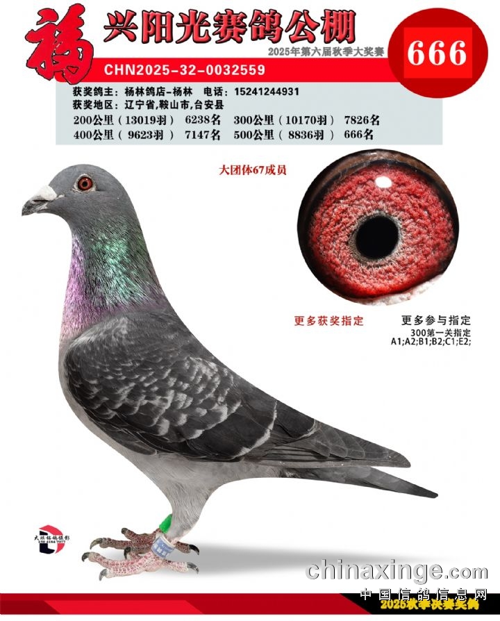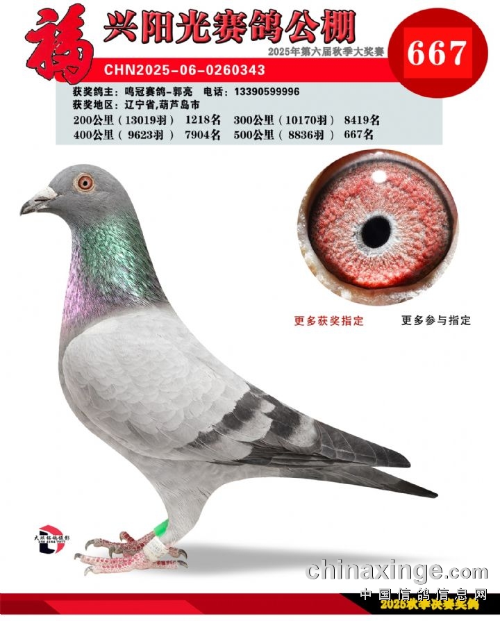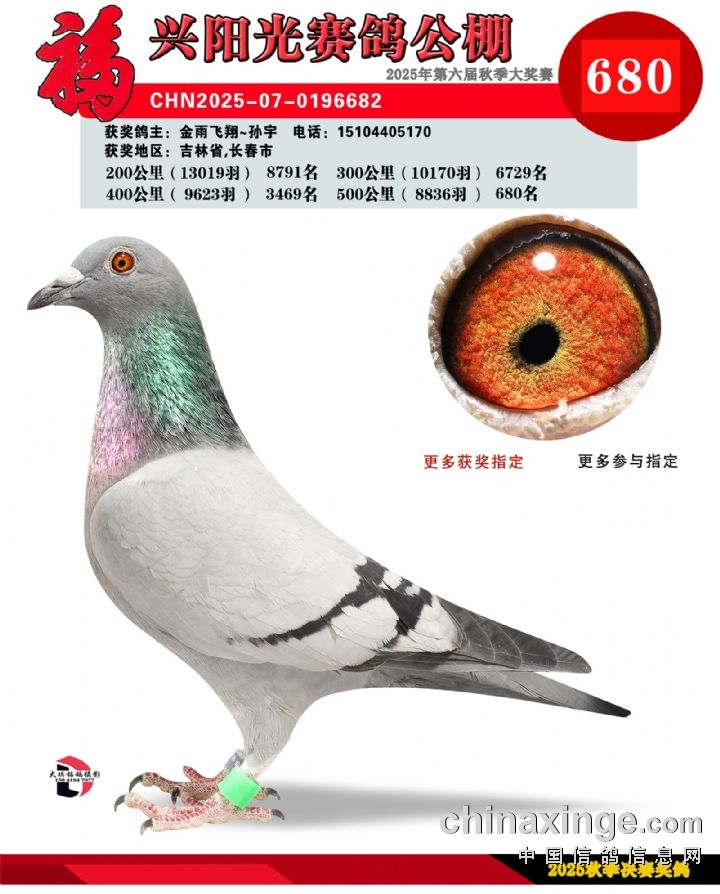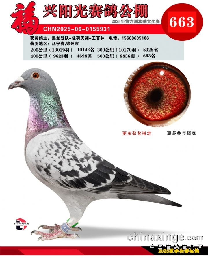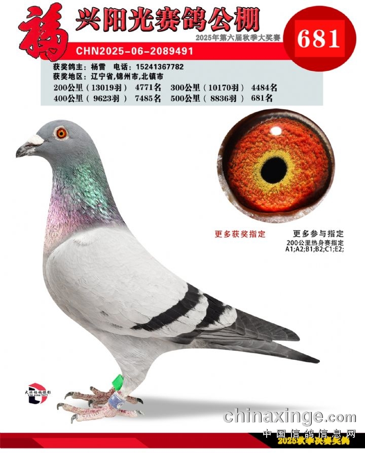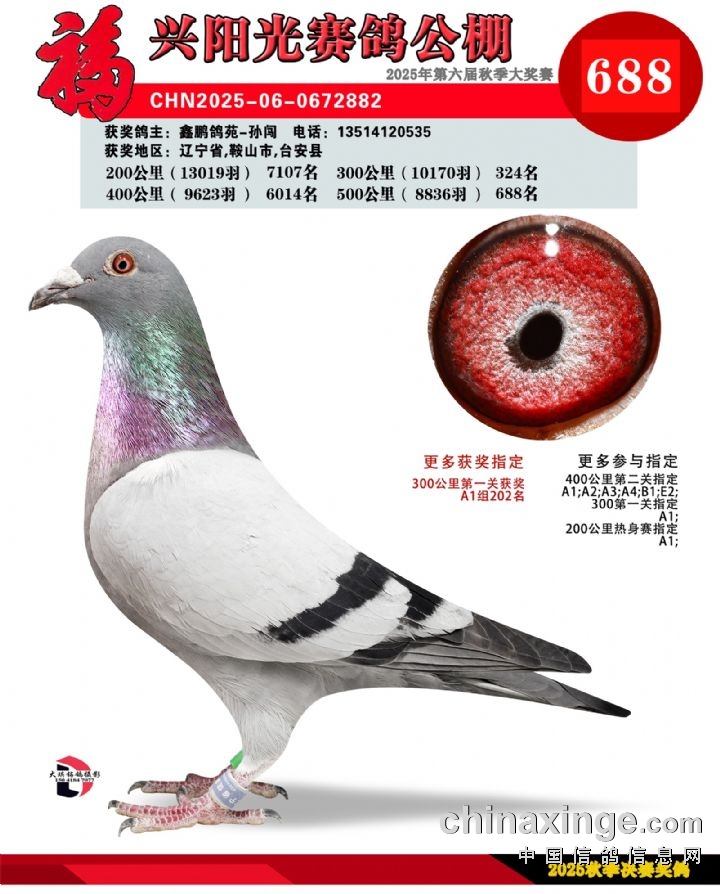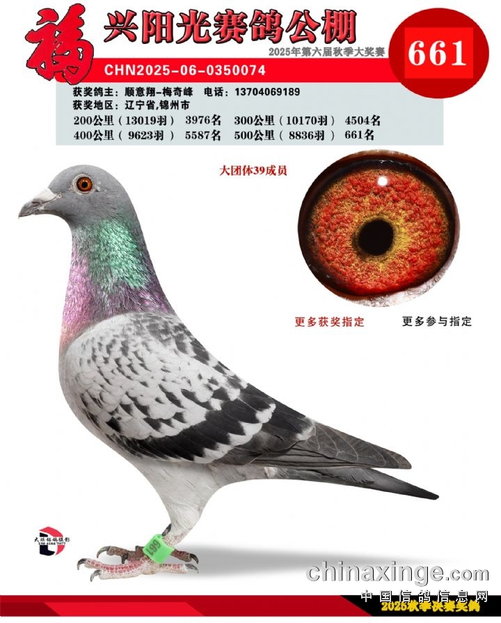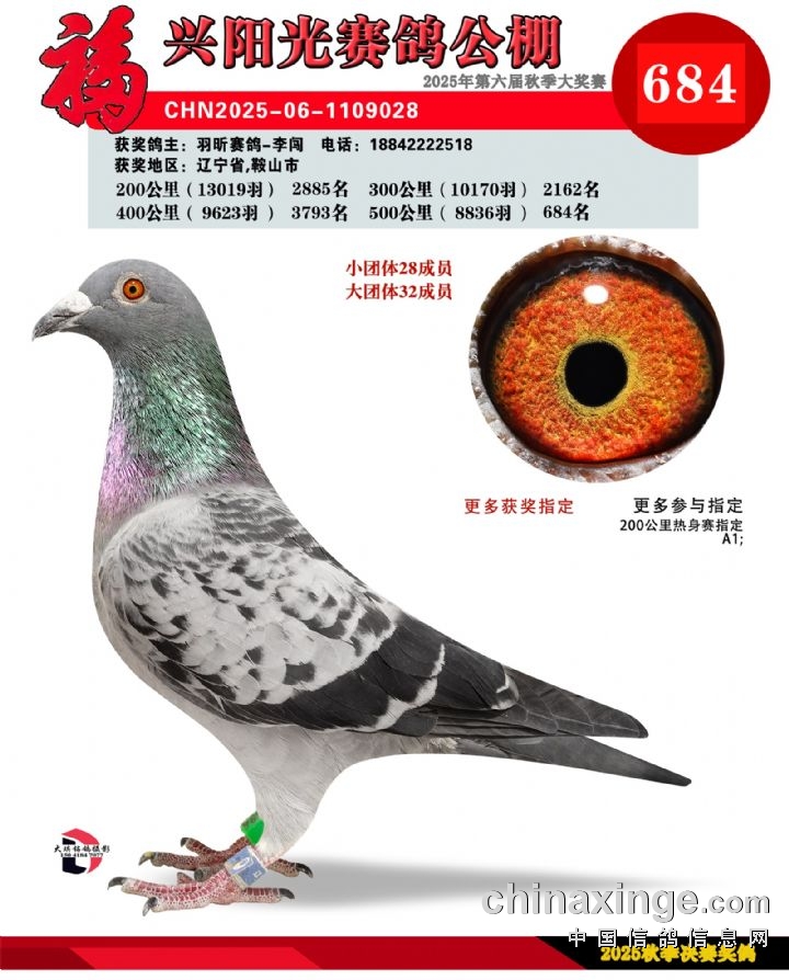 辽宁福兴阳光公棚决赛661名-690名获奖鸽照片