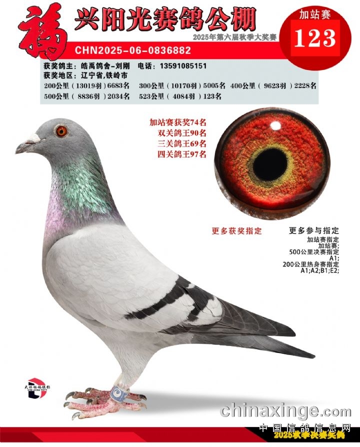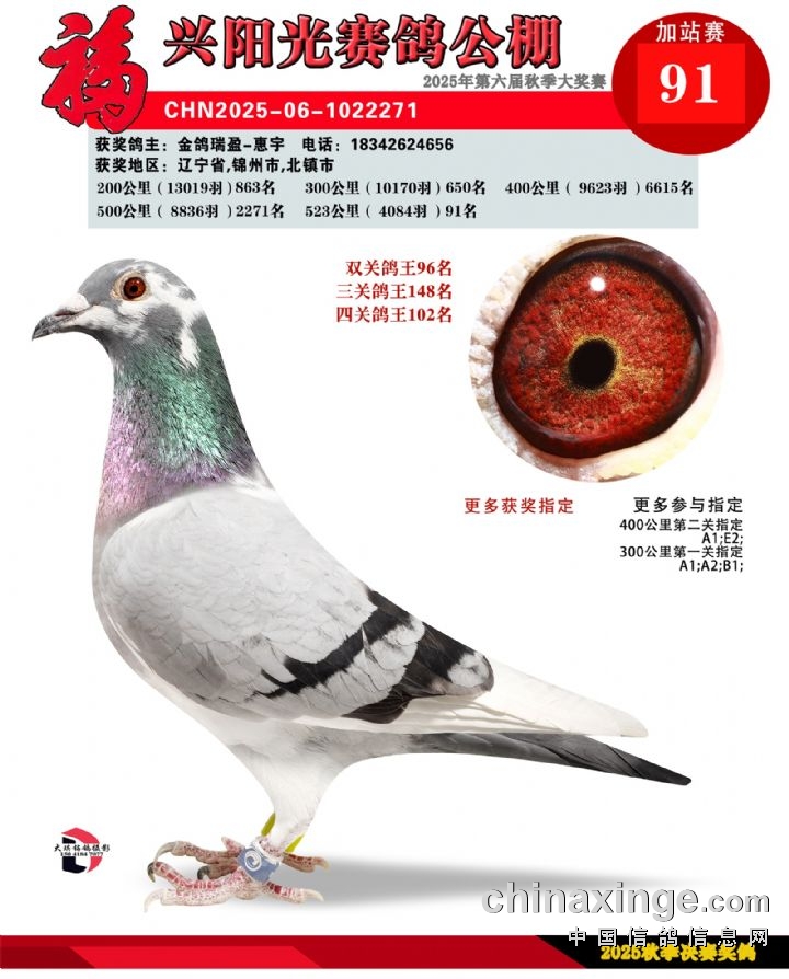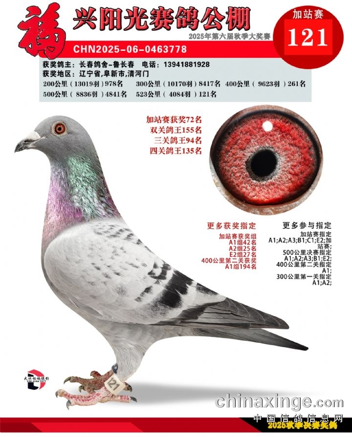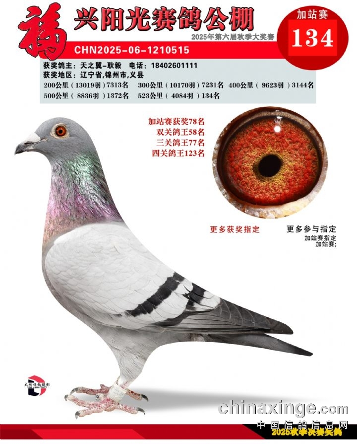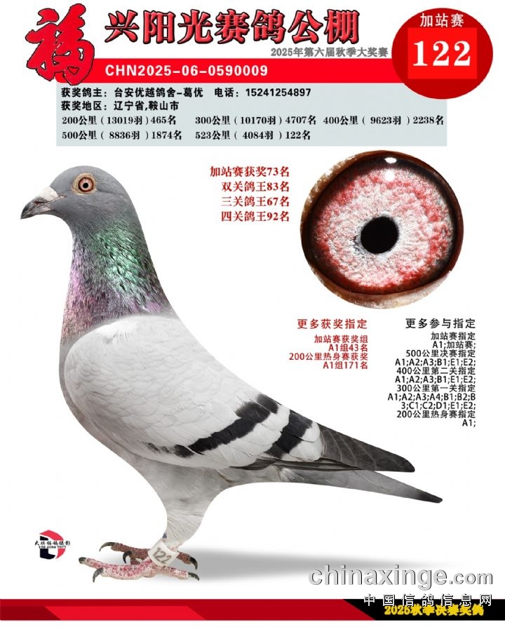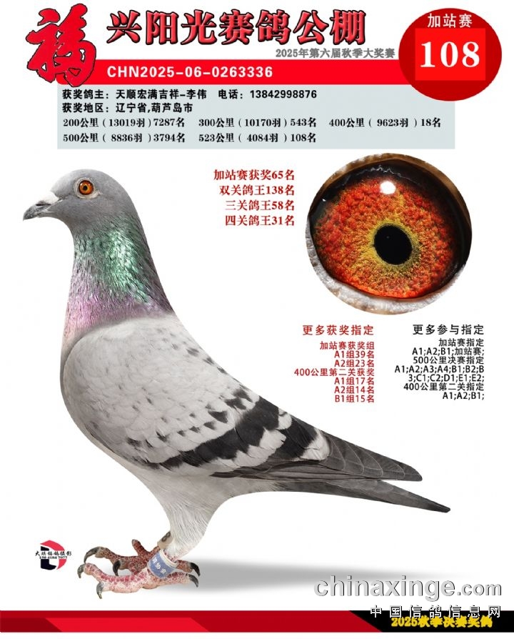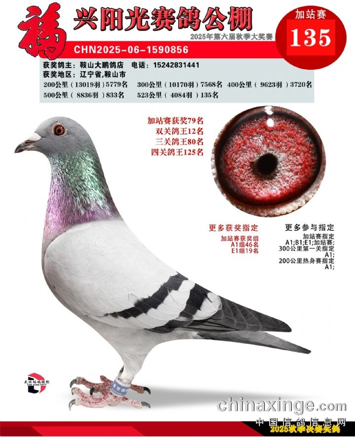 辽宁福兴阳光公棚加站赛91名-135名获奖鸽照片