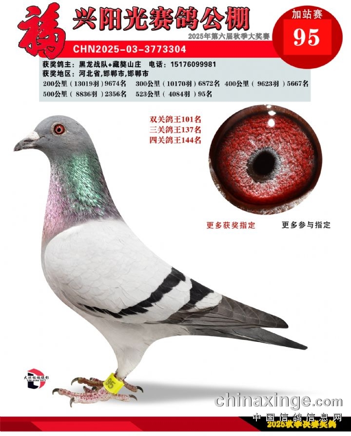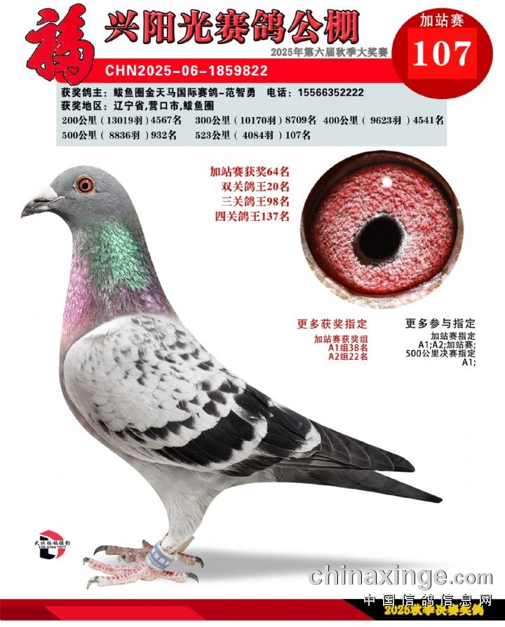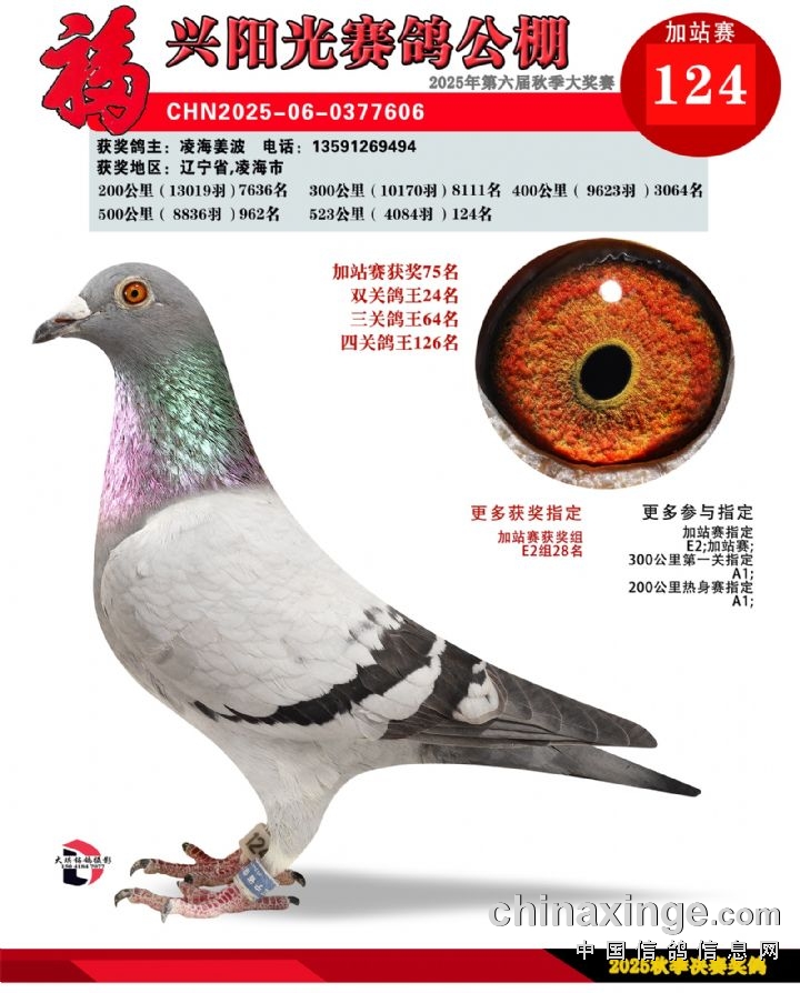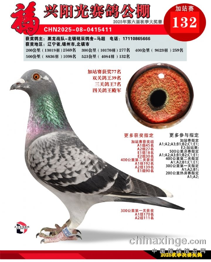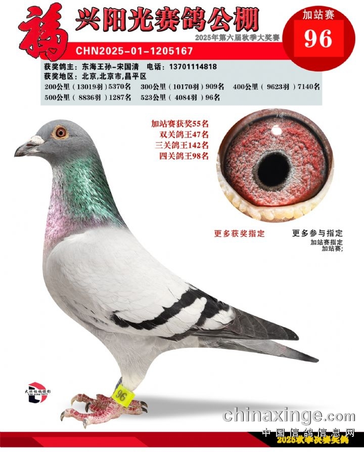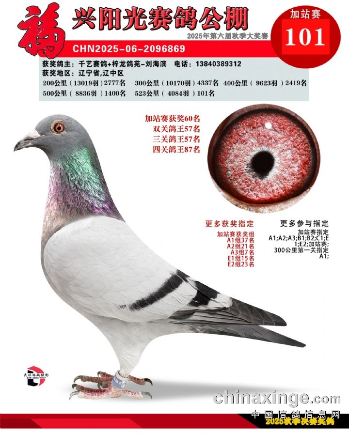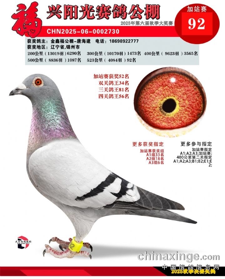 辽宁福兴阳光公棚加站赛91名-135名获奖鸽照片
