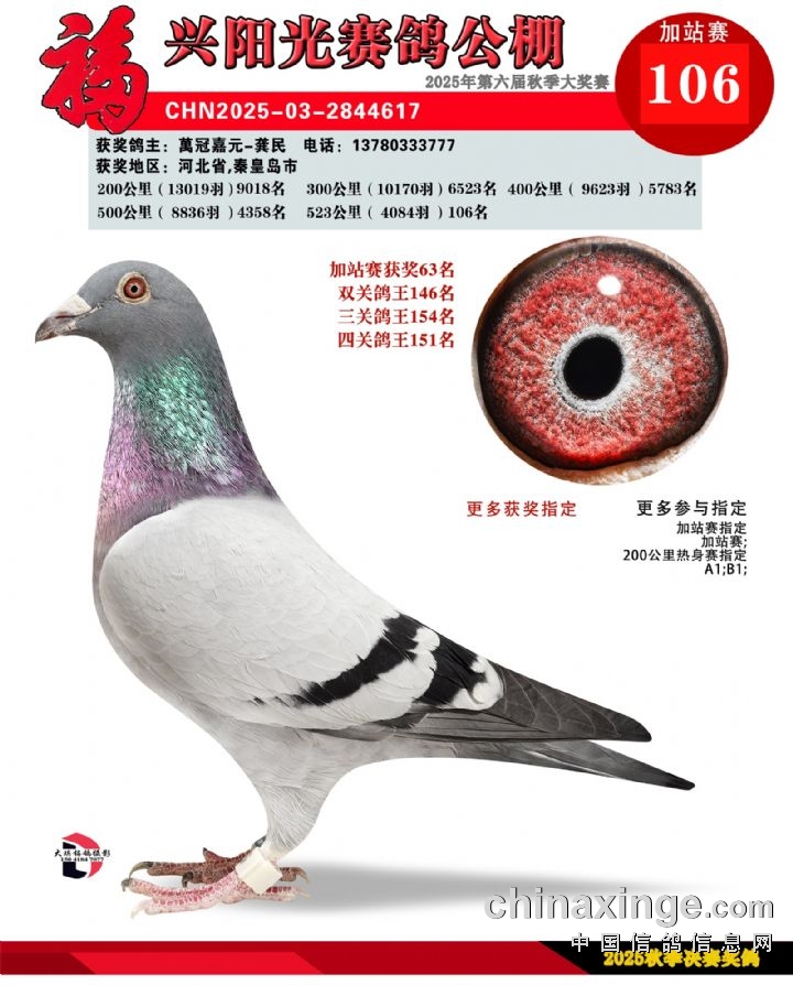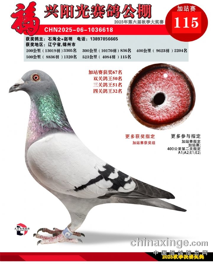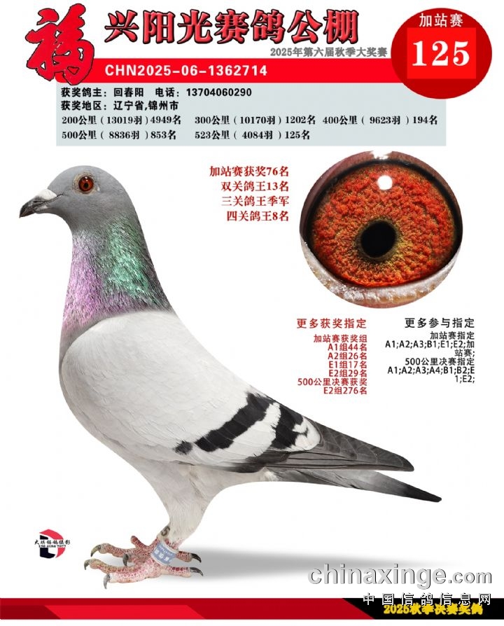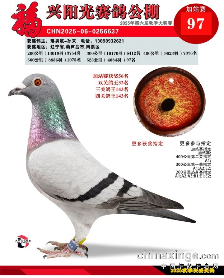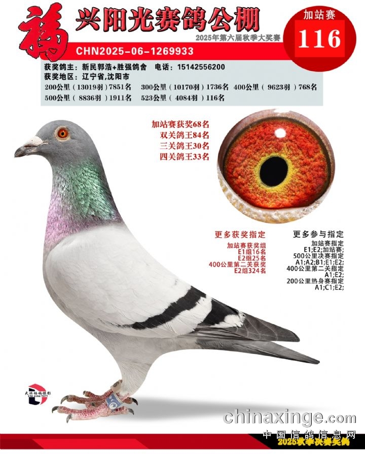 辽宁福兴阳光公棚加站赛冠军-30名获奖鸽照片