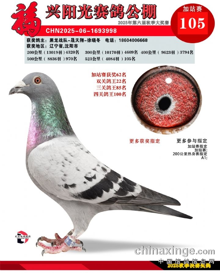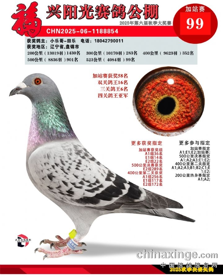 辽宁福兴阳光公棚加站赛184名-202名获奖鸽照片