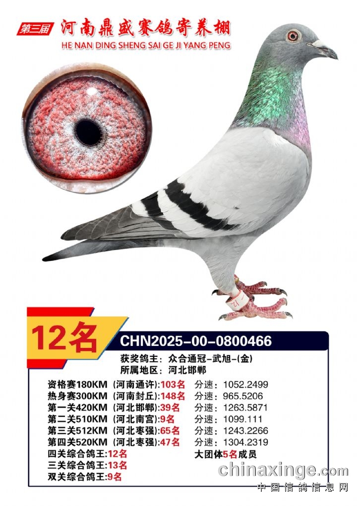 2025河南鼎盛秋季四关赛获奖鸽赏析四