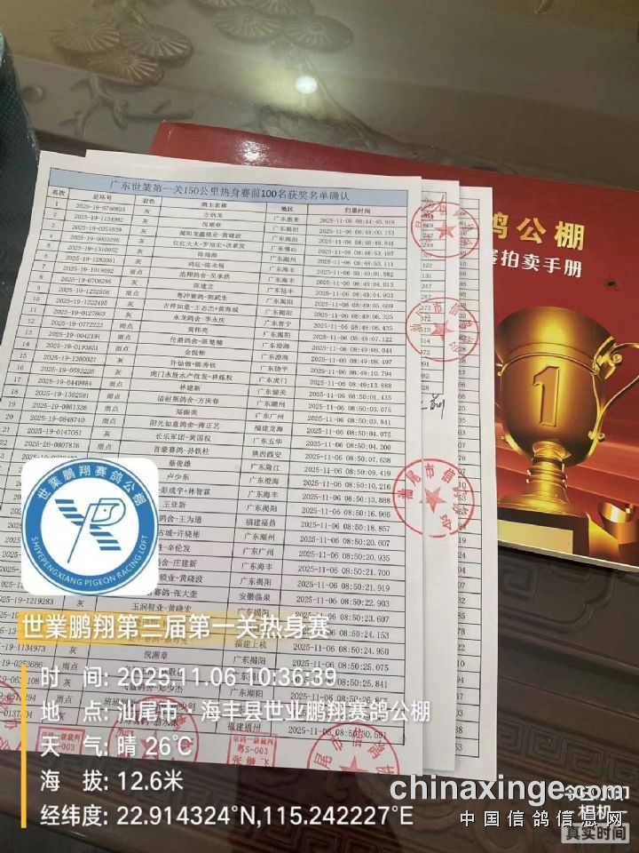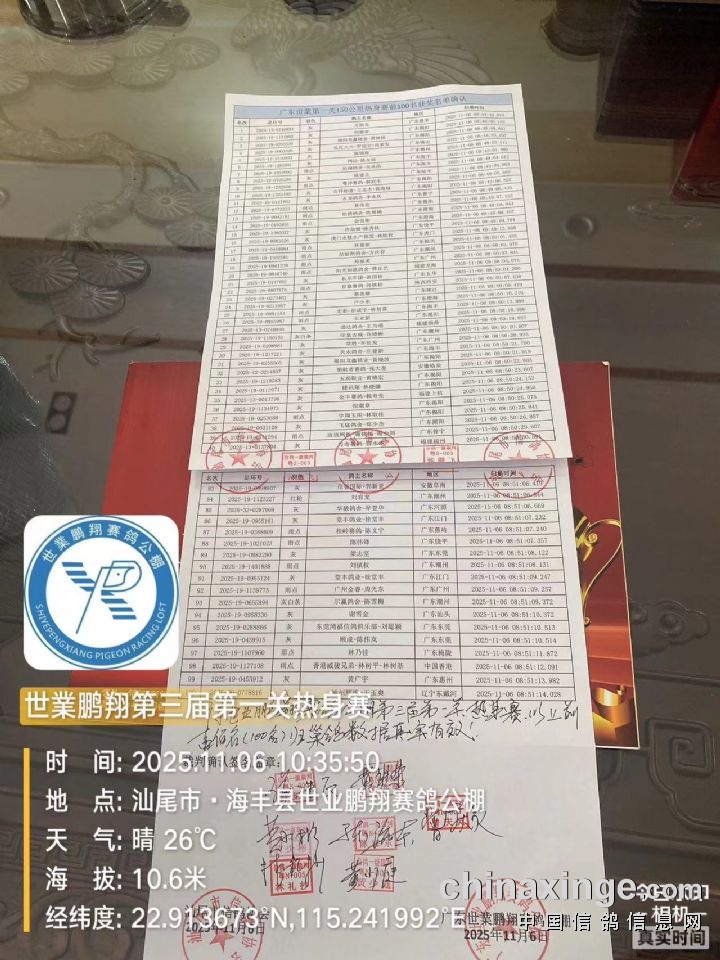 广东世業鹏翔2025年第一关热身赛集鸽清单羽(9120羽)