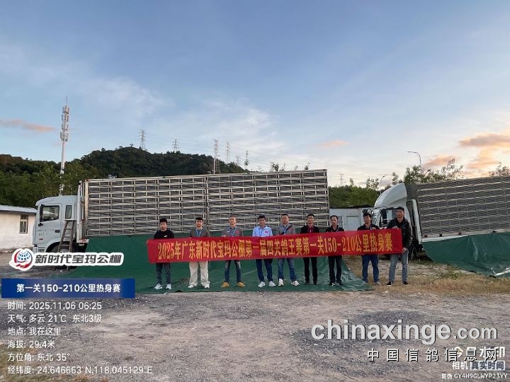 • 广东新时代宝玛(秋棚) 第一关(150-210公里)热身赛集鸽确认:9305羽 (2025-11-6 1:38:59)