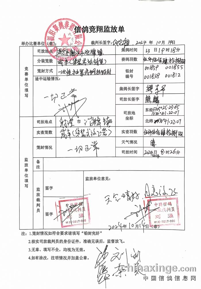 四川福阳赛鸽公棚2024年第六届秋赛第三关决赛执裁公告