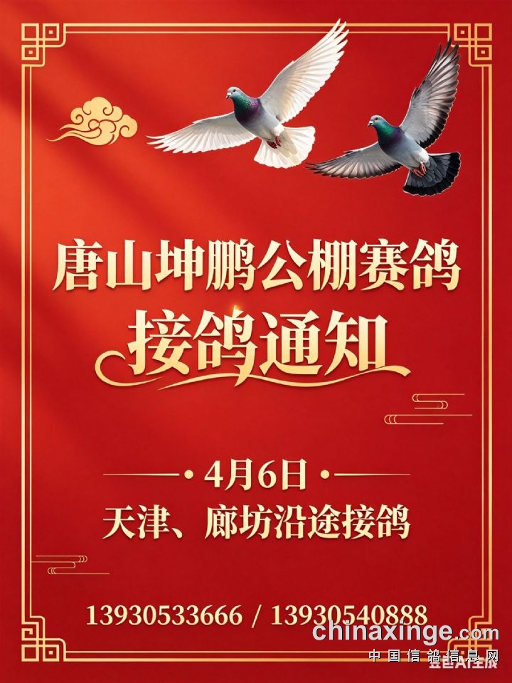 唐山坤鹏赛鸽公棚接鸽通知