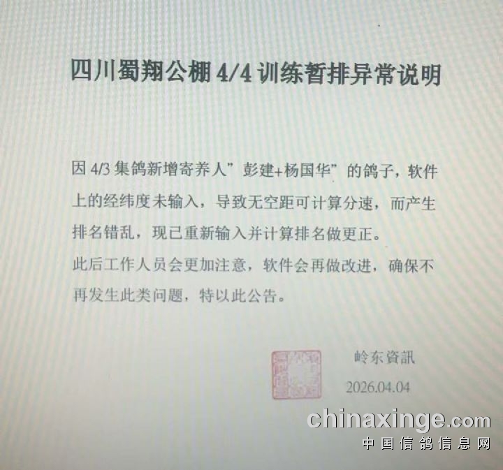 四川蜀翔职业赛鸽公棚110公里训养赛退费公告