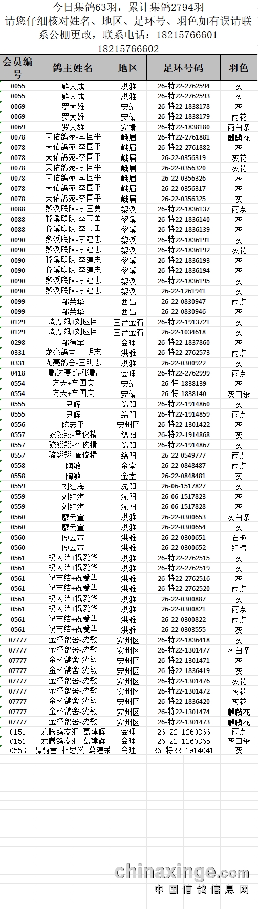 提示:如果此页面是训放清单,要想快速查询鸽环号,请按