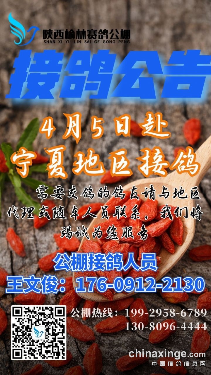 陕西榆林赛鸽公棚4月5日赴宁夏地区接鸽公告