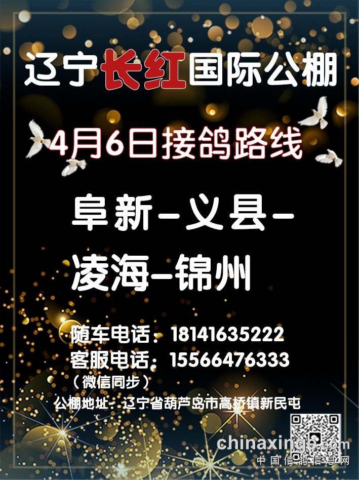 辽宁长红公棚4月6日阜新方向接鸽路线
