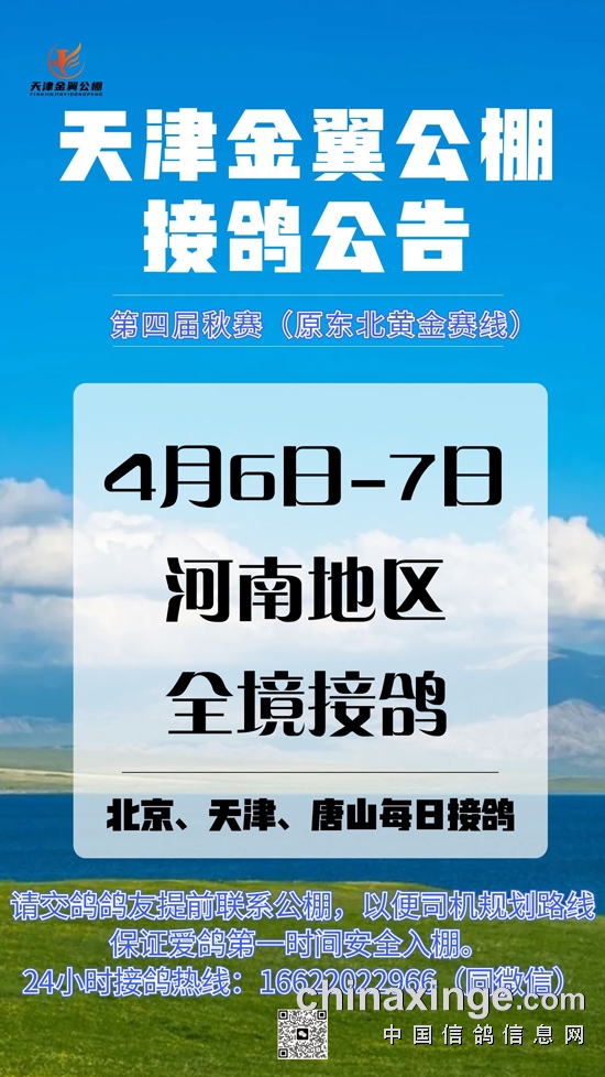 天津金翼公棚4月6-7日河南全境接鸽