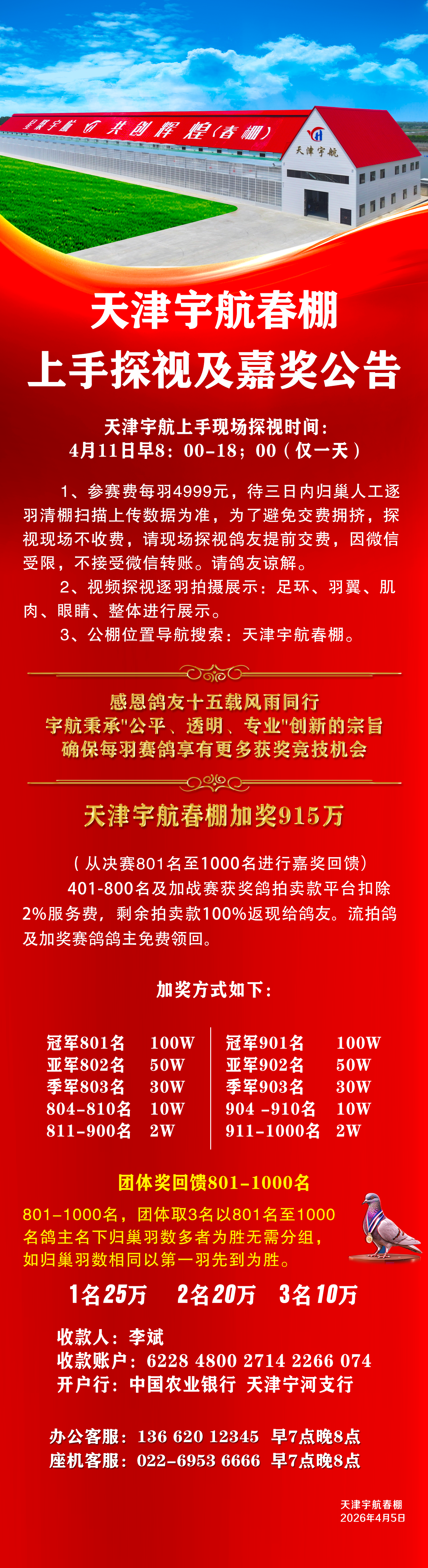 天津宇航春棚(第十五站)36公里改为3公里训放通知及数据链接